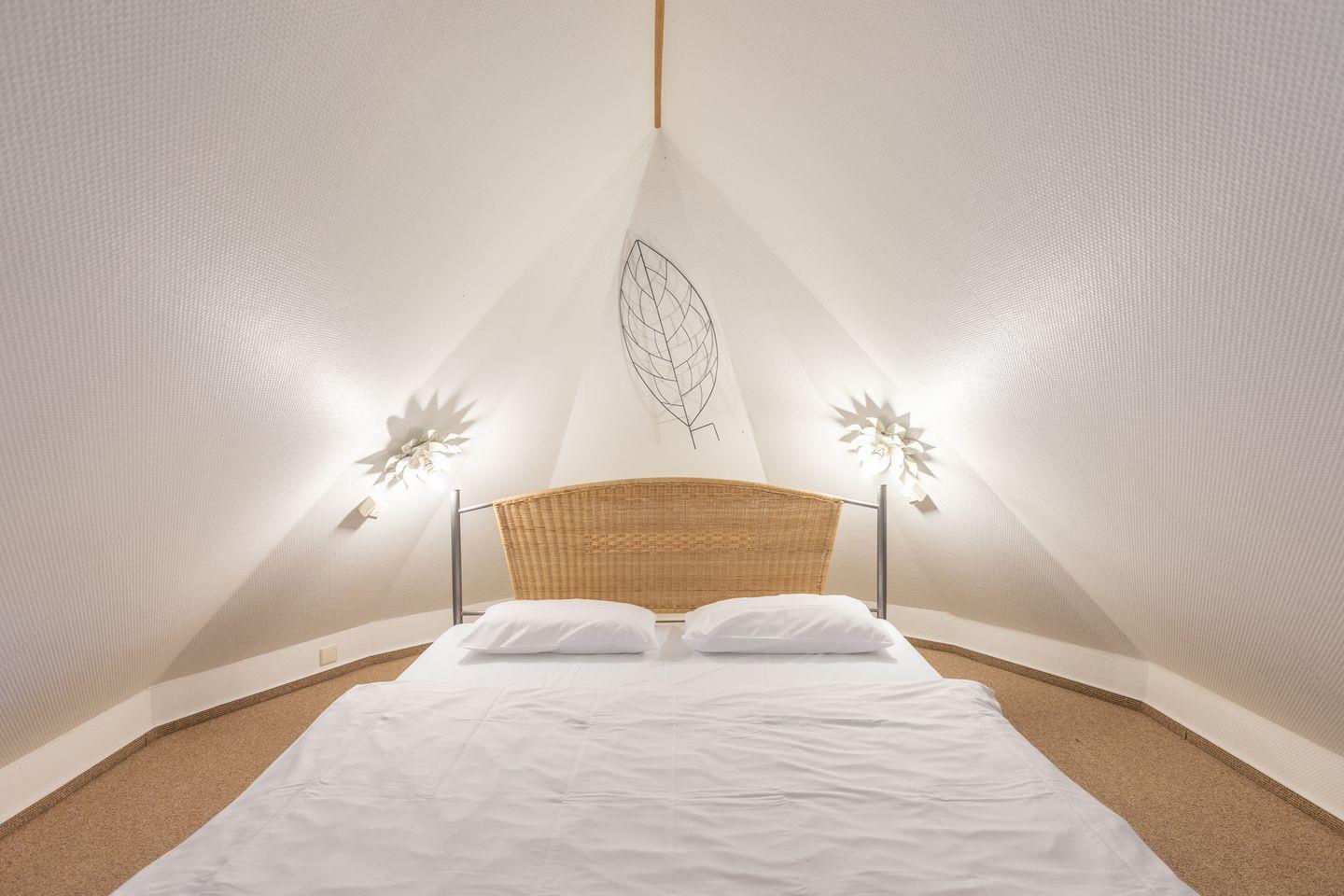 Über eine offene Treppe erreichen Sie das Schlafzimmer im Obergeschoss mit einem Doppelbett (180 x 200).