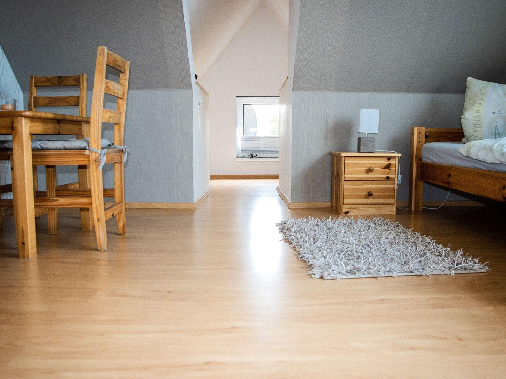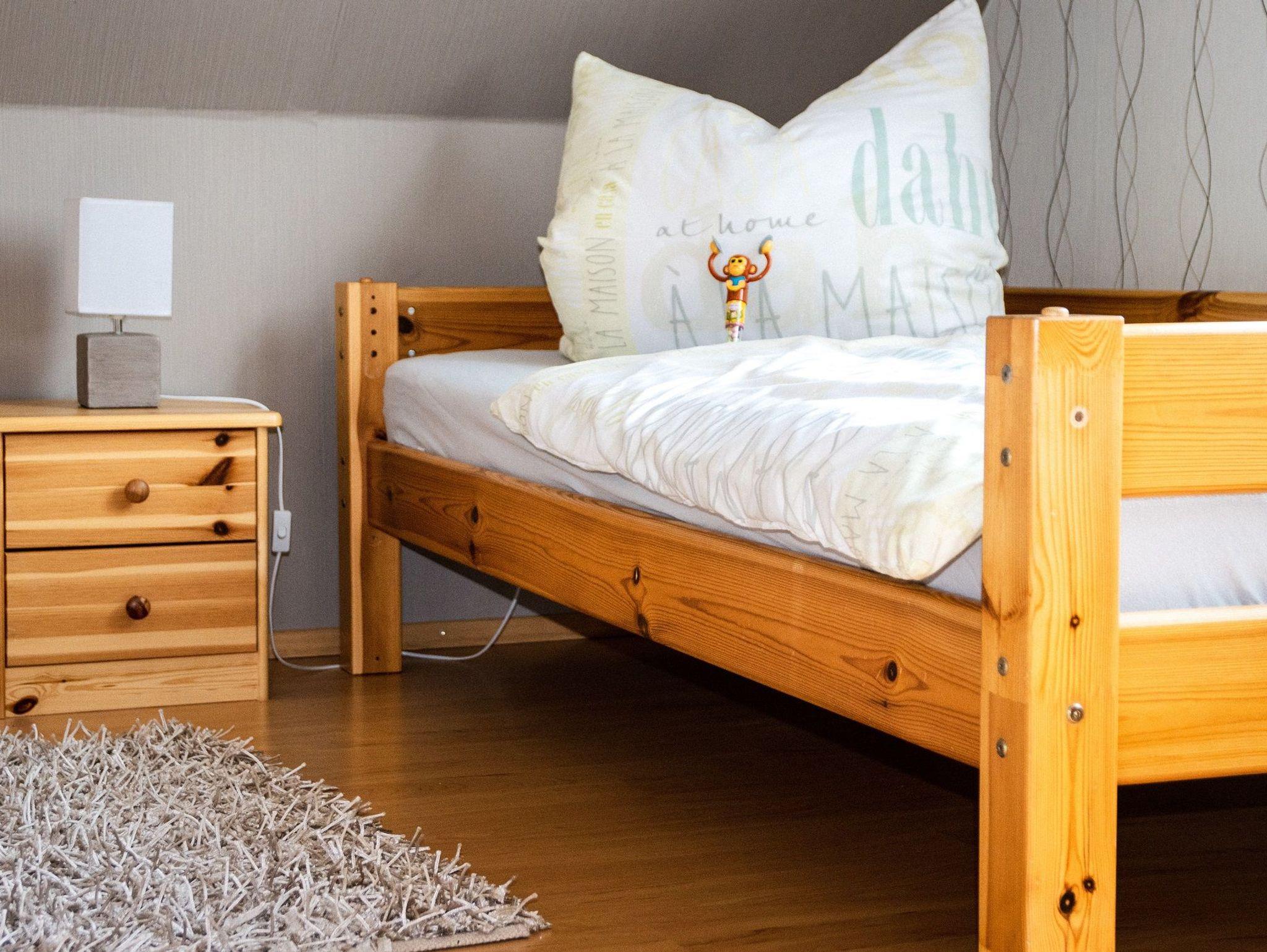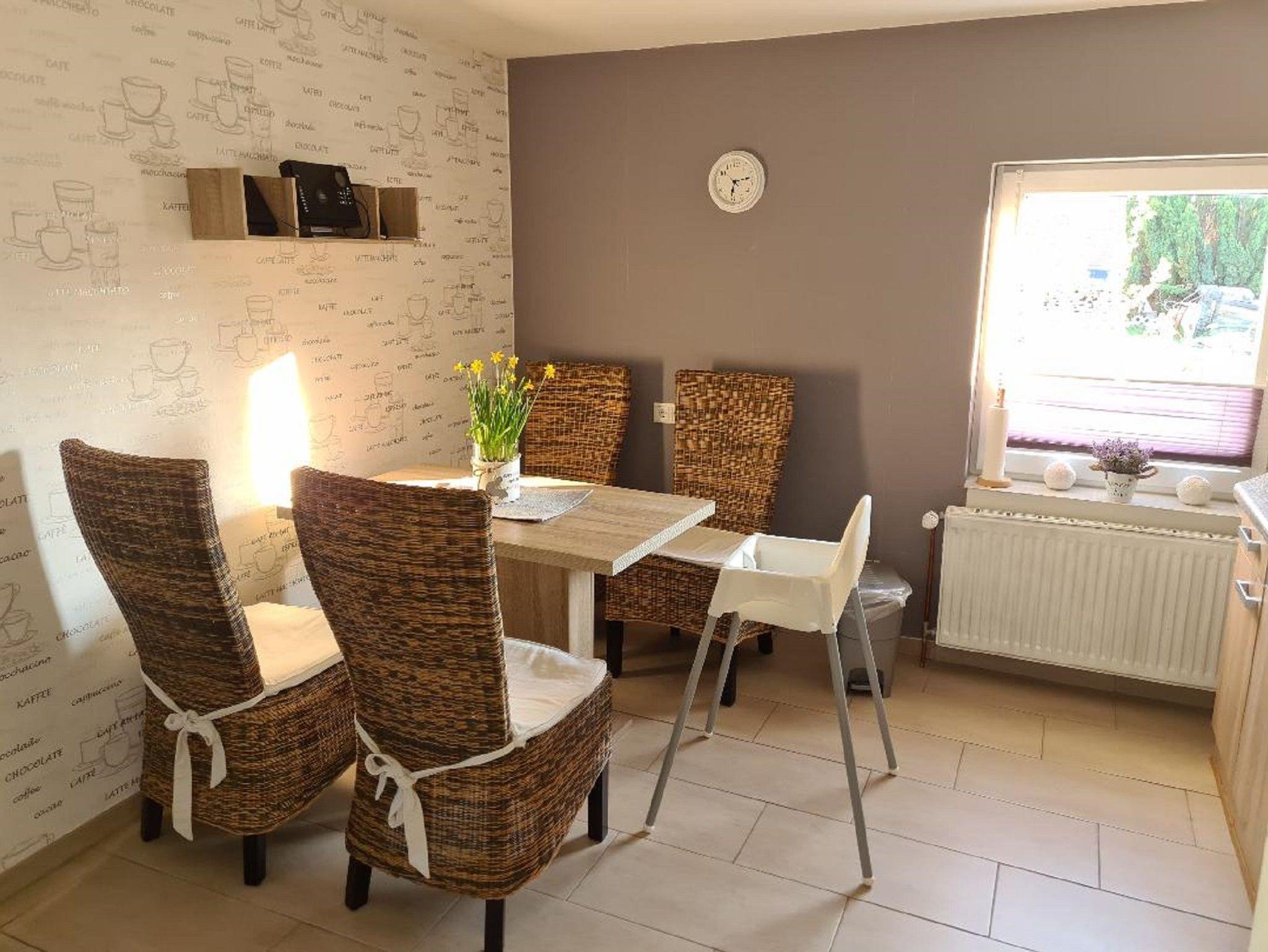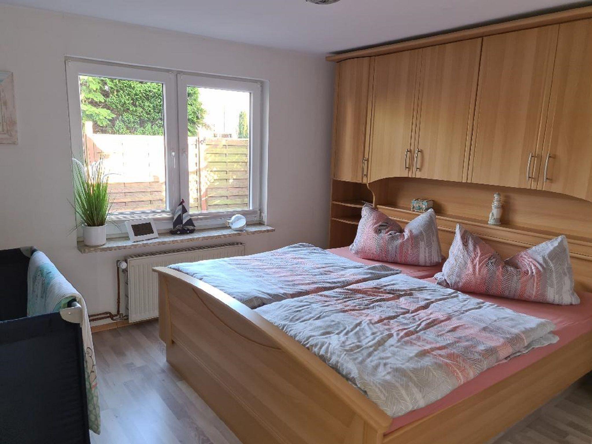 Gemütlich- komfortable 65 qm große Ferienwohnung. mit Wohnzimmer, Schlafzimmer, kleinem Kinderzimmer, Dusche/WC und Küche. Es gibt eine Terrasse zum Grillen und Garten zum Toben. Außerdem befindet sich im oberen Stockwerk zwei weitere Schlafzimmer die dazu gebucht werden können. Unterbringung auch für Familien mit 3 Kindern! Fahrräder inklusive, ebenfalls Bettwäsche. Nichtraucherwohnung, Allergikerfreundlich, Fliesen und Laminatböden,