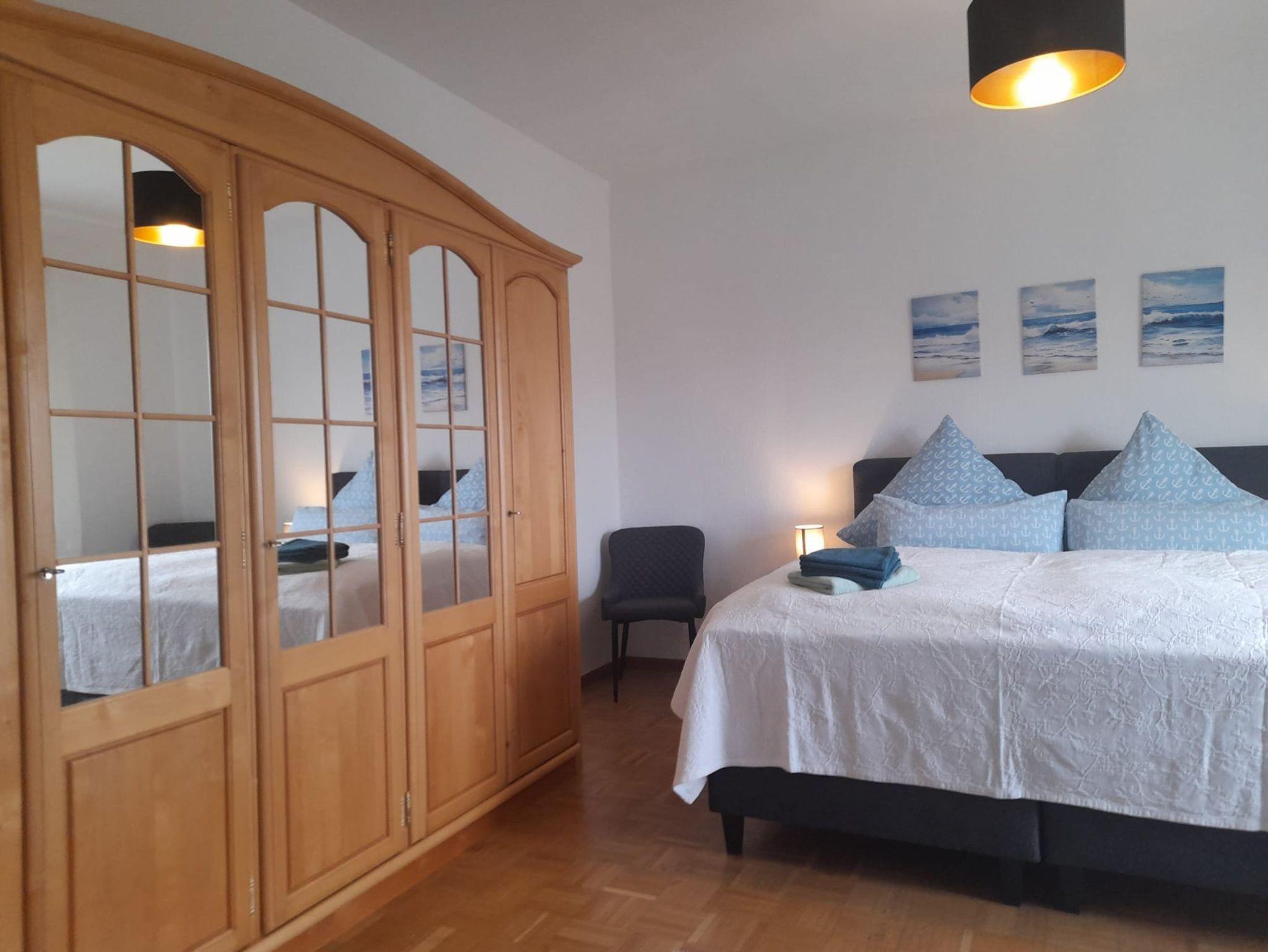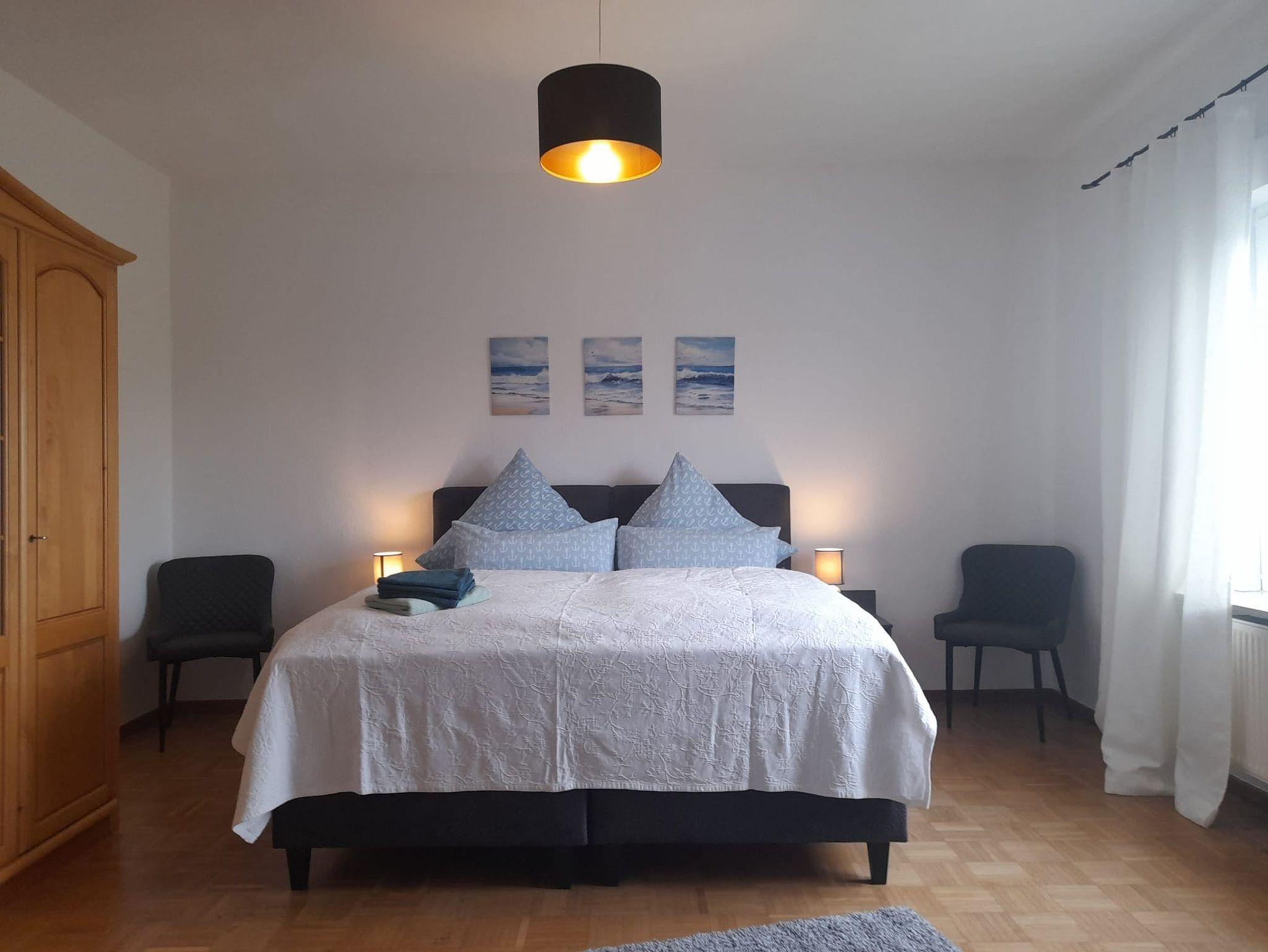 Auf 85qm verteilen sich ein Schlafzimmer mit 180 x 200 cm großen Boxspringbett, 2 kleine Schlafräume mit Einzelbetten 90 x 200 cm, ein Wohnzimmer mit Schlafcouch, Fernseher und WLAN stehen zur Verfügung, Küche mit Cerankochstelle, Backofen, Kühlschrank, Mikrowelle, Kaffeemaschine, Toaster, Wasserkocher. Im Bad befindet sich eine Duschwanne. Bettwäsche und Handtücher gehören mit zur Wohnung Parkplatz und Unterstellmöglichkeiten für Fahrräder ist vorhanden. Im Garten befindet sich ein Pool, der in der Sommerzeit genutzt werden kann.