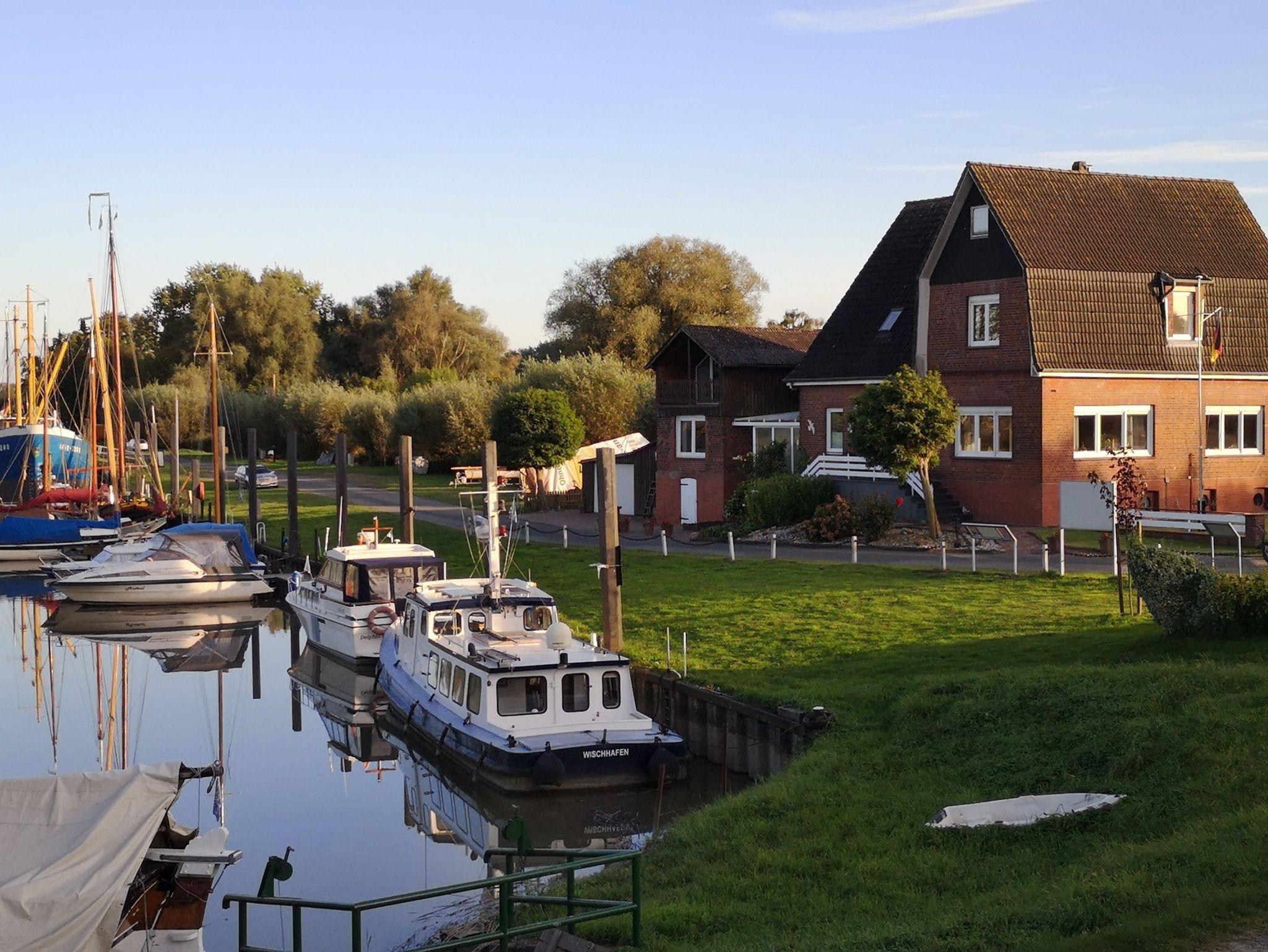 Die Ferienwohnung 'Hafenblick' bietet modernen Komfort mit Pool und Hafenblick in Wischhafen am Kehdinger Küstenschiffahrts Museum.