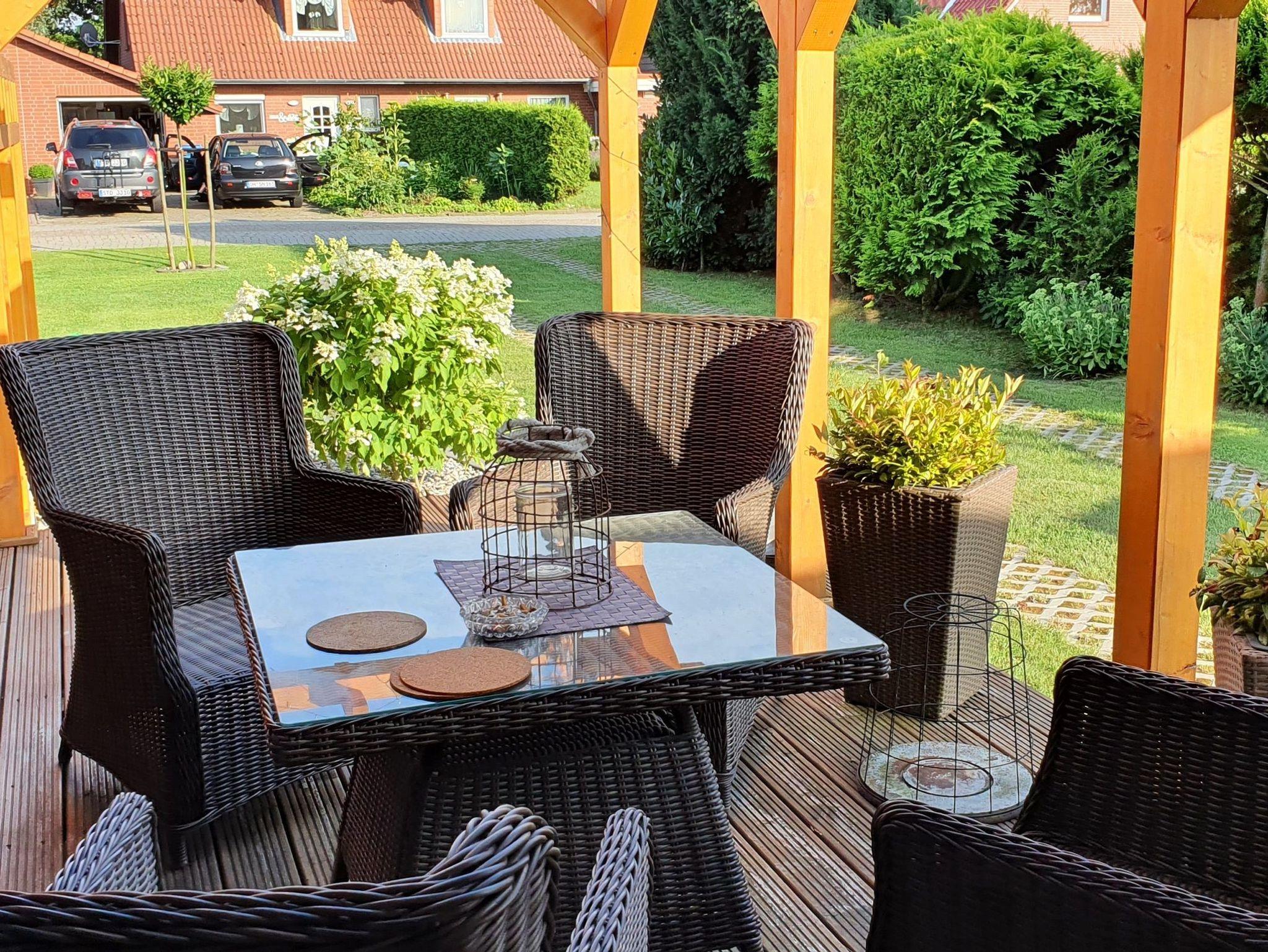 Modernes, familienfreundliches Ferienhaus in Wischhafen mit zwei Terrassen und Spielmöglichkeiten für Kinder.