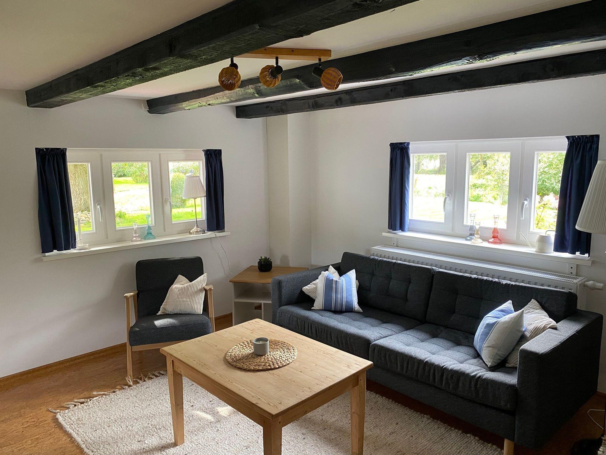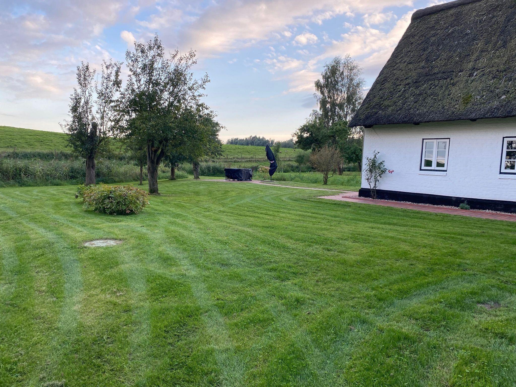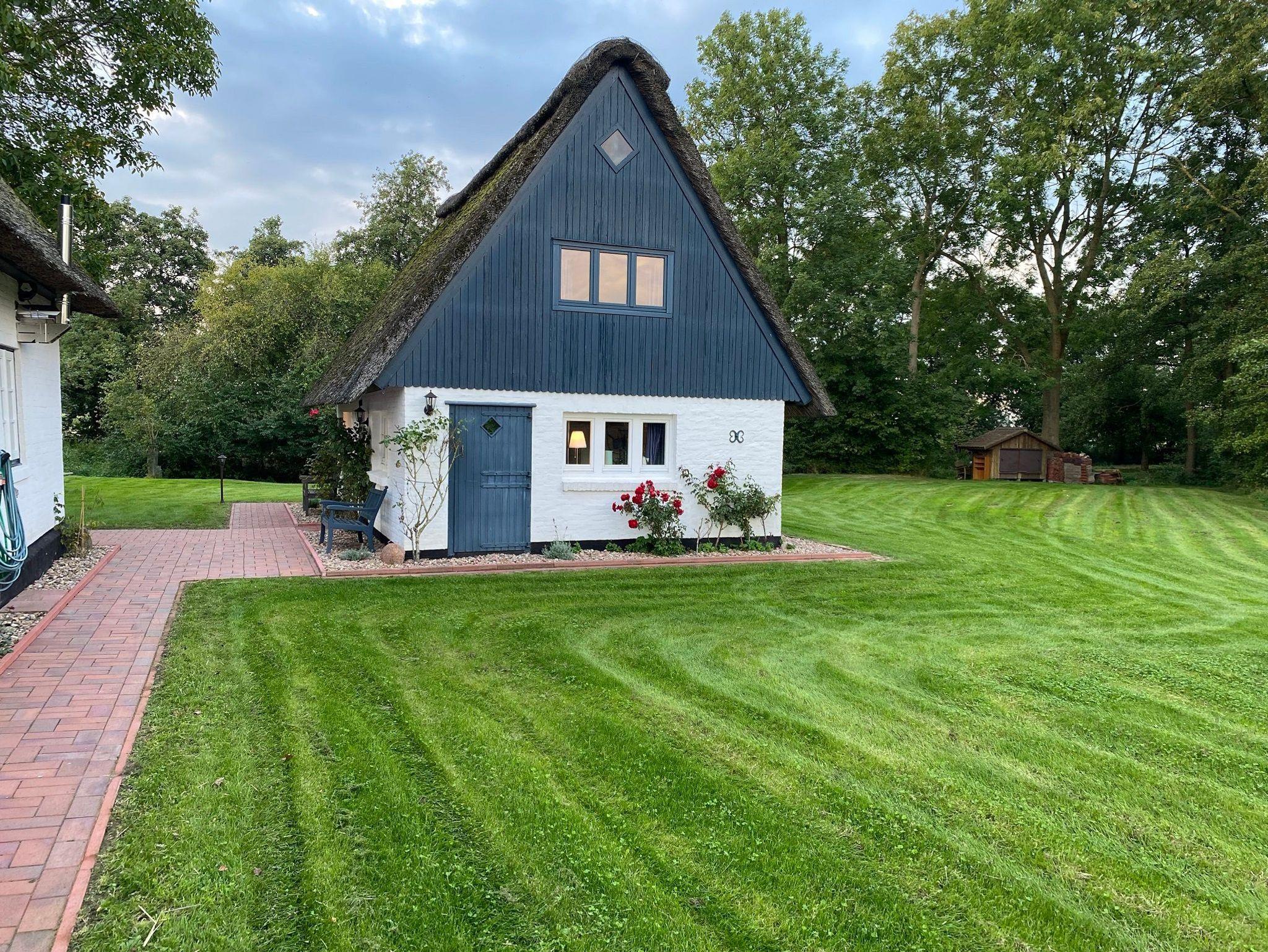 Ganzes Ferienhaus; ruhig gelegen; Nichtraucherhaus; niedrige Deckenhöhe, eigene Terrasse mit Gartenmöbeln; Grillecke, Doppelbett; 2 Einzelbetten; Alte kleine Reetdachkate. Besonderes Highlight ist der SPA-Bereich im Garten, Nutzung und Reinigung sind inklusive.