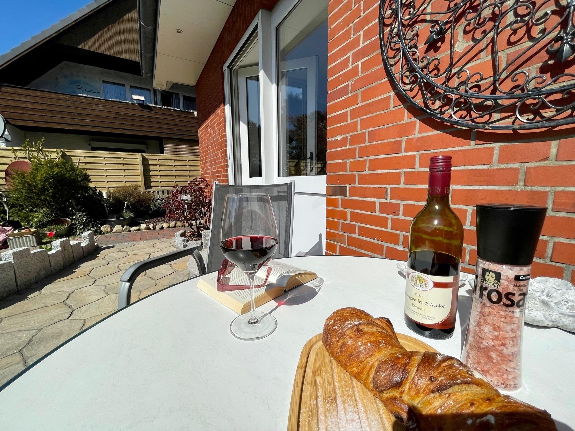 Eine kleine "Auszeit" gefällig? Die Ferienwohnung "Dünennest" hat einen separaten Eingang mit eigener Terrasse, Strandkorb und Gartenblick. Sie liegt extrem ruhig und nah an den schönen Dünen Amrums.