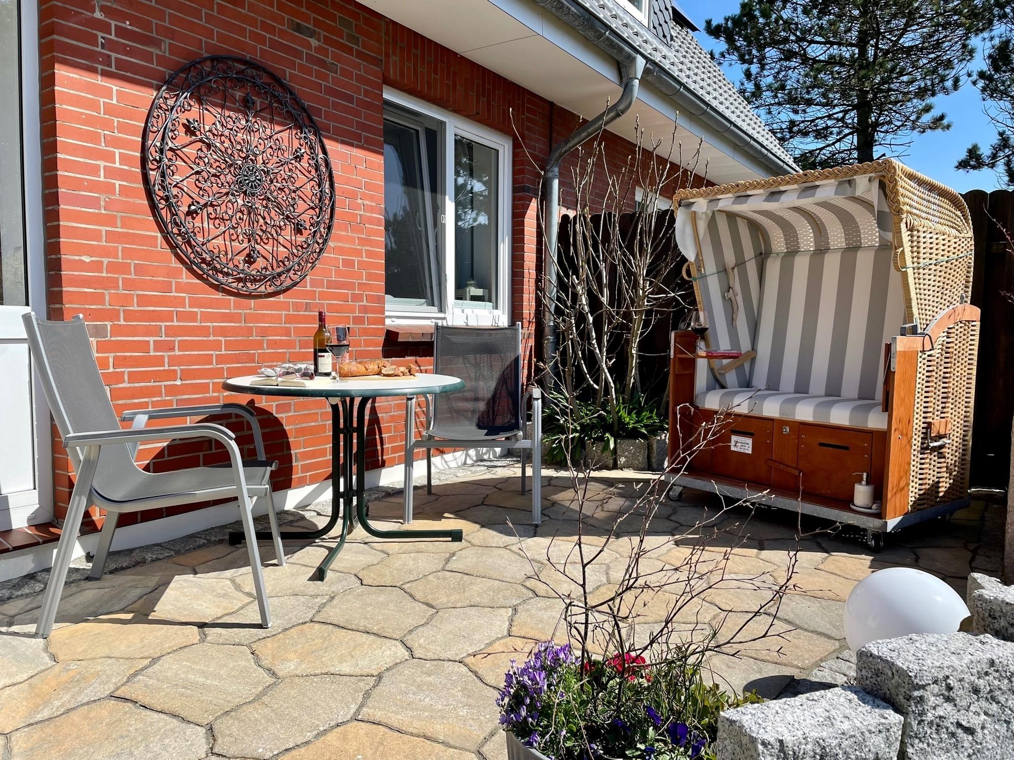 Gemütliche Ferienwohnung mit Terrasse, Strandkorb und Gartenblick in ruhiger Lage nahe den Dünen auf Amrum.