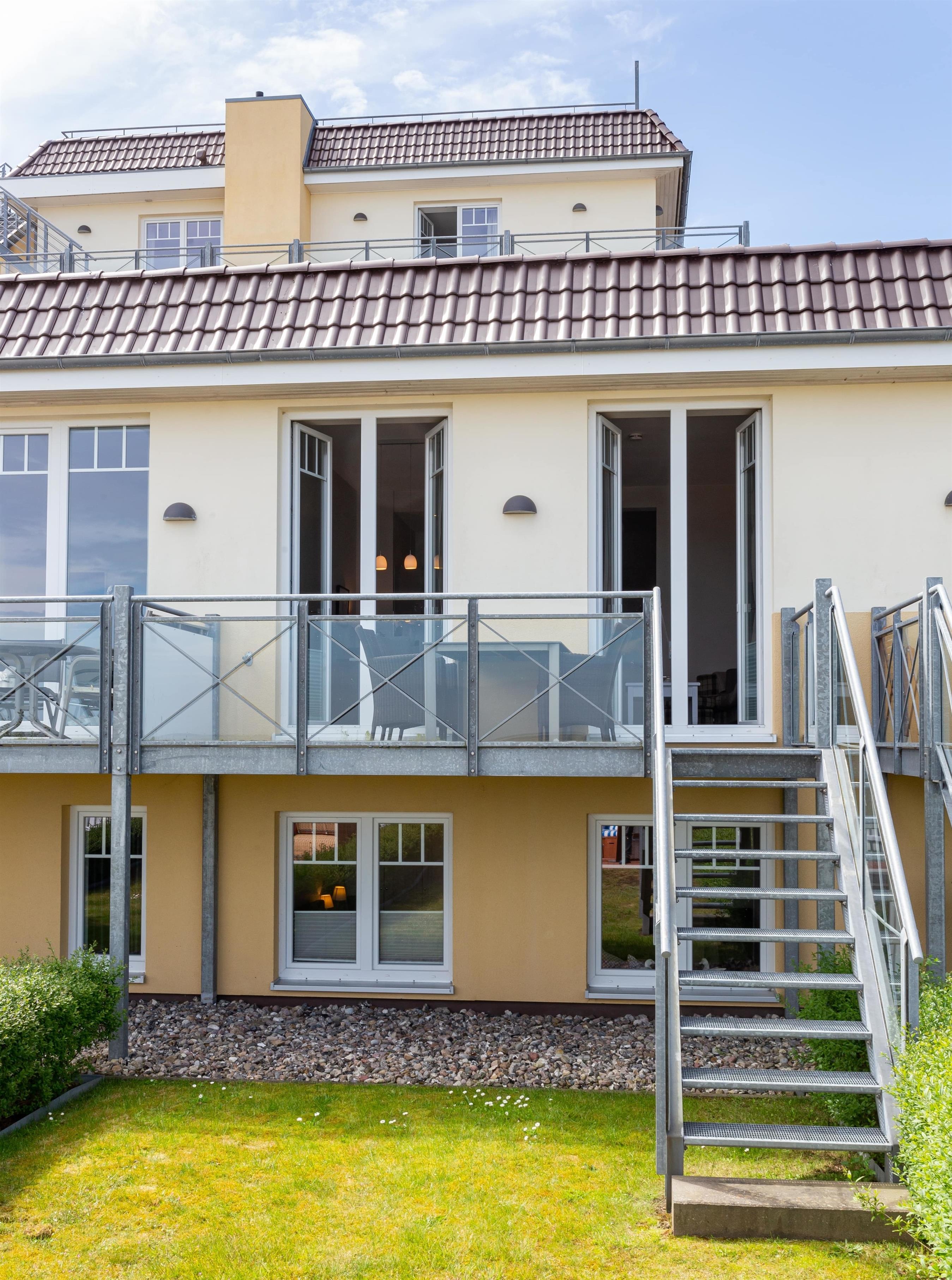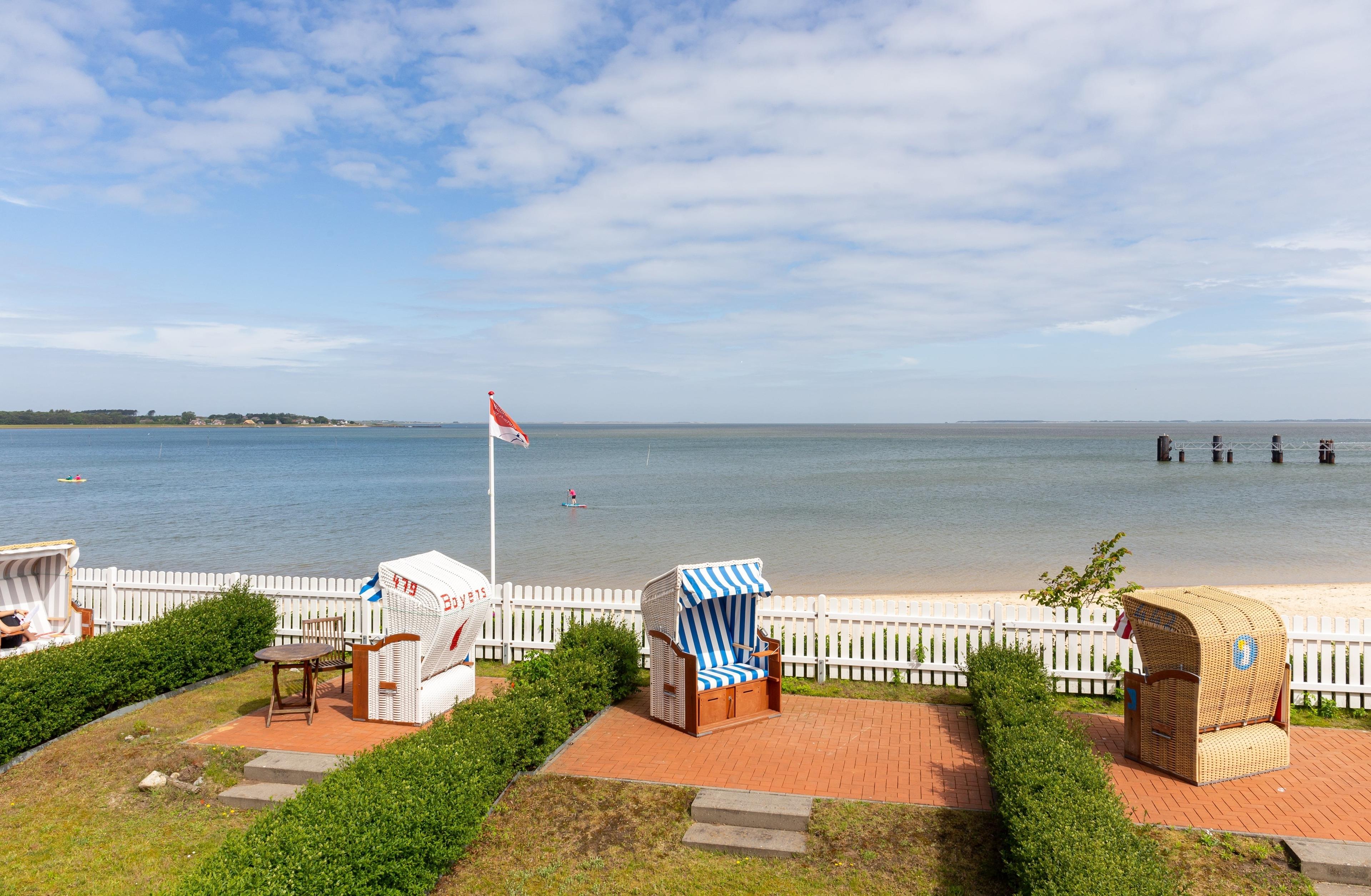 Zusätzlich zur eigenen Terrasse mit Meerblick dürfen Sie sich über einen eigenen Garten mit Strandkorb freuen.