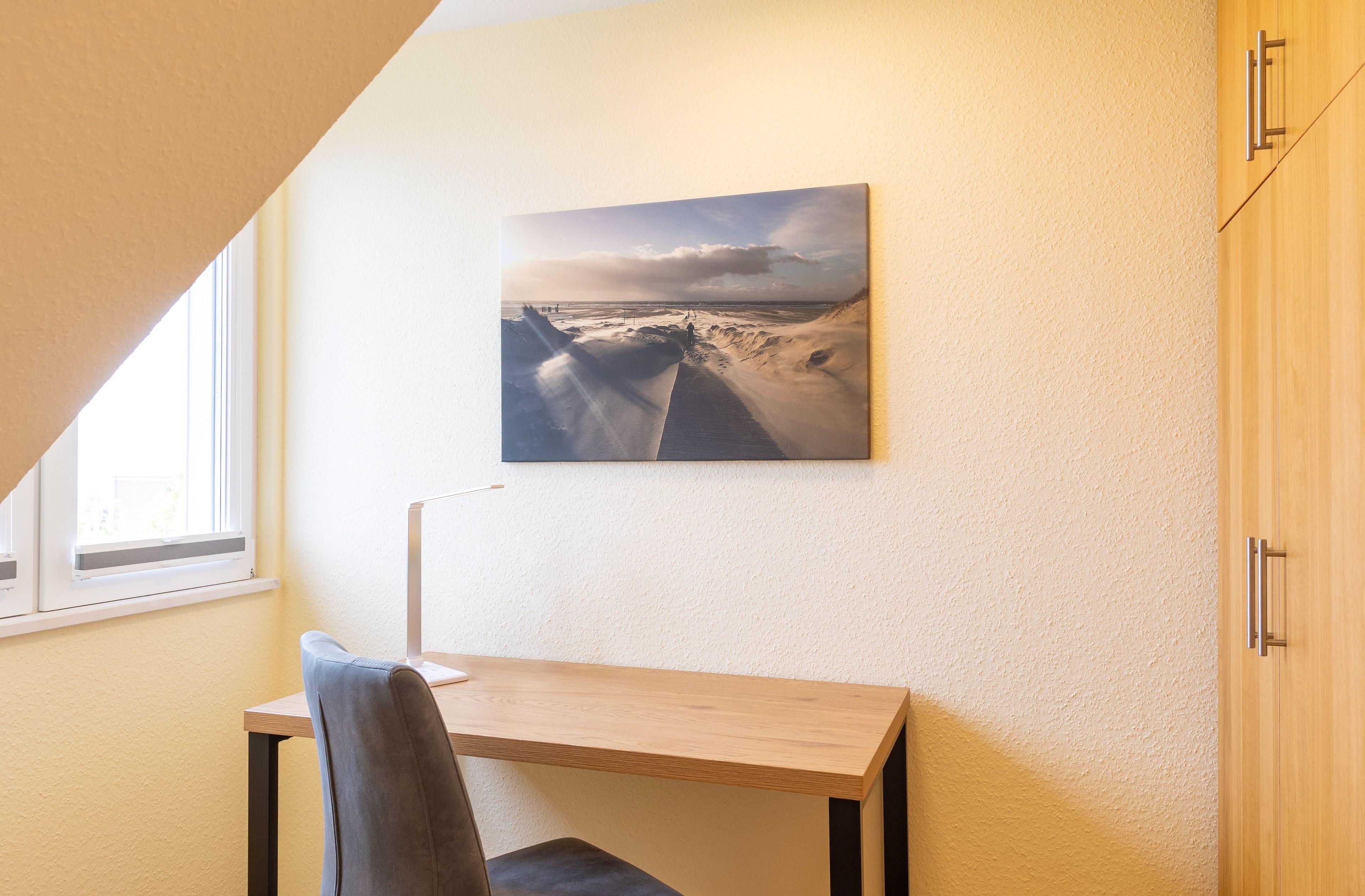 Zwei separate Schlafzimmer mit geräumigen Einbauschränken stehen Ihnen zur Verfügung. Sie finden dort einmal ein Doppelbett, sowie ein Einzelbett mit Schreibtisch vor. So können Sie Ihren Urlaub mit viel Platz zu dritt oder entspannt zu zweit genießen.
