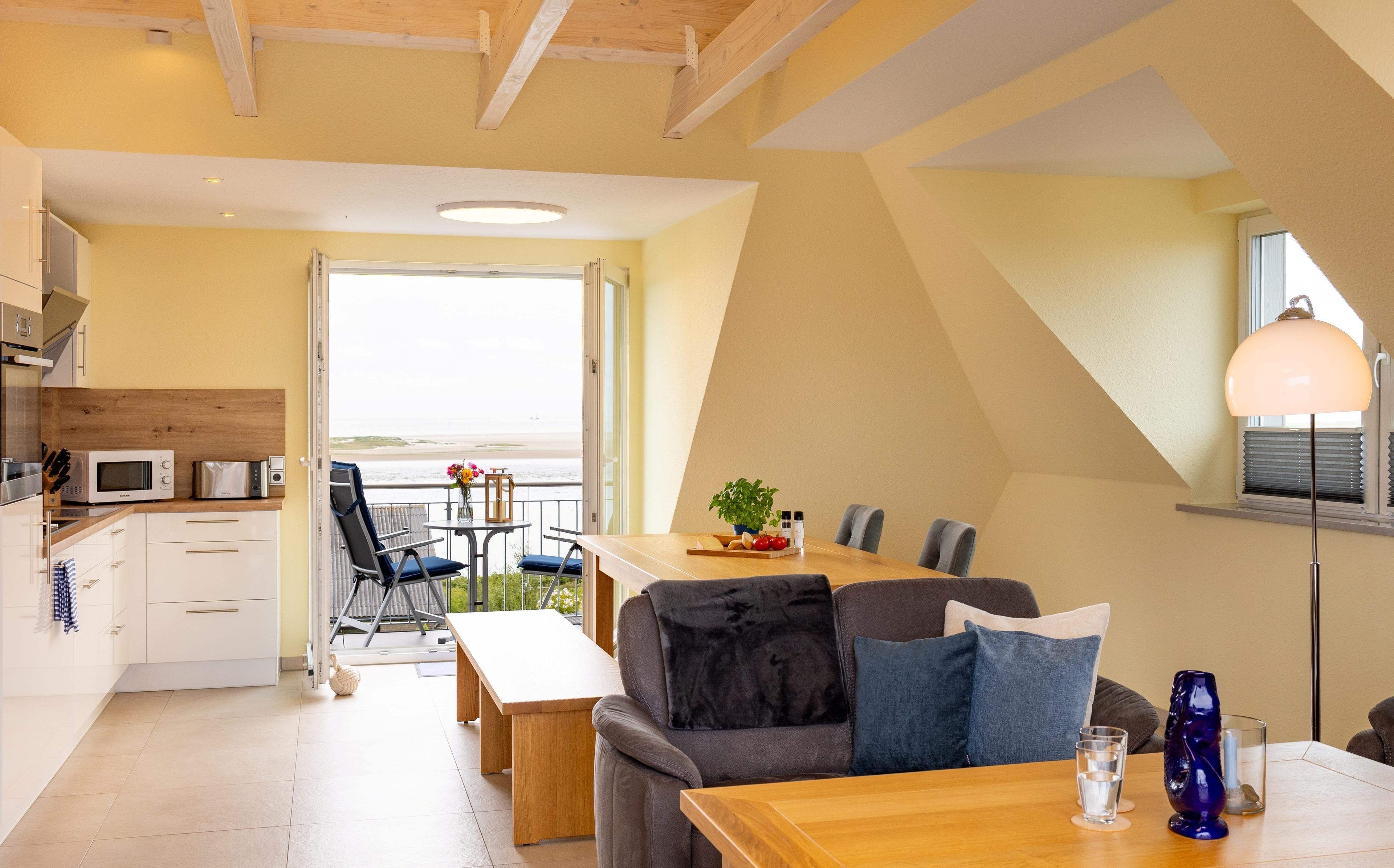 Die Ferienwohnung Adlerhorst in Wittdün auf Amrum bietet traumhaften Meerblick, zwei Balkone und modernen Komfort in ruhiger Lage.