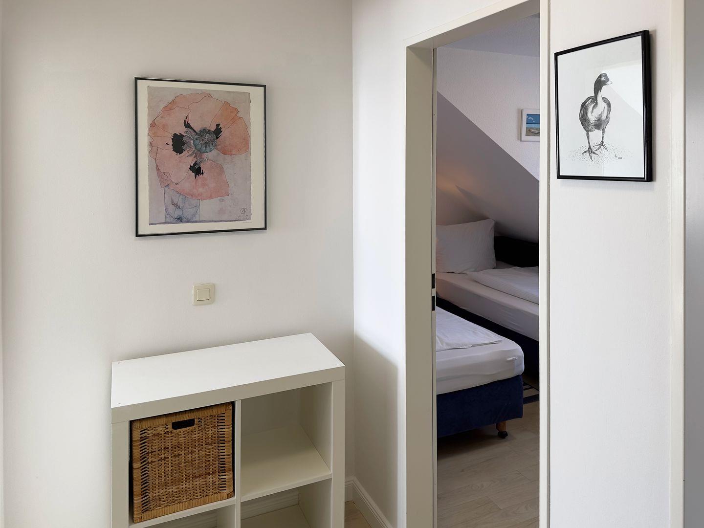 Die Ferienwohnung „Südspitze 34/27" im 1. Obergeschoss des Hauses in Wittdün auf Amrum ist eine 2-Zimmer-Ferienwohnung (ca. 32 qm Grundfläche) mit Schlafmöglichkeiten für 1 bis 2 Personen.