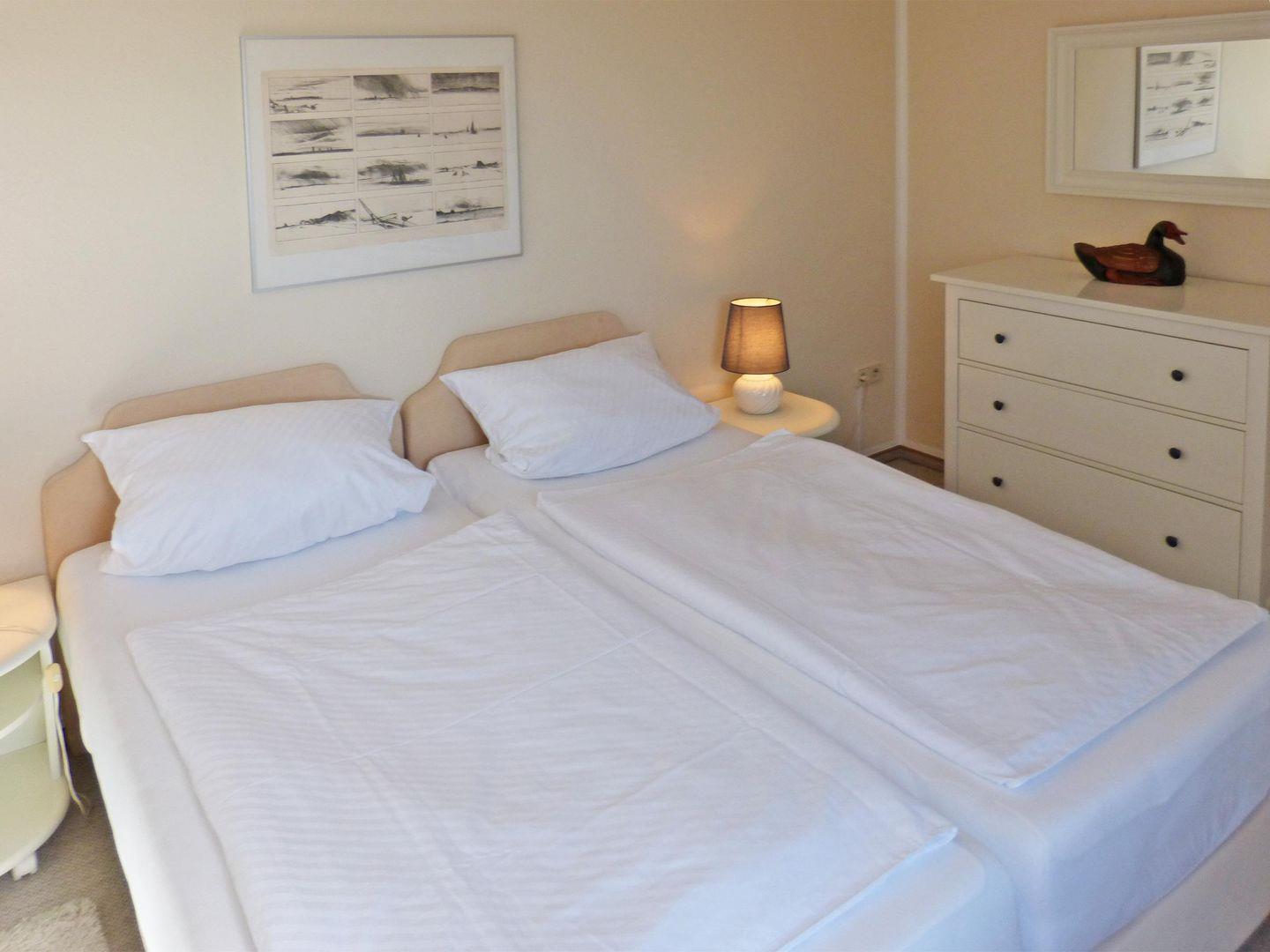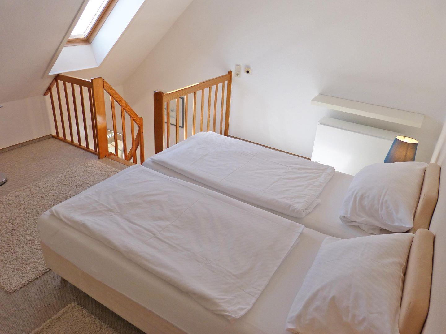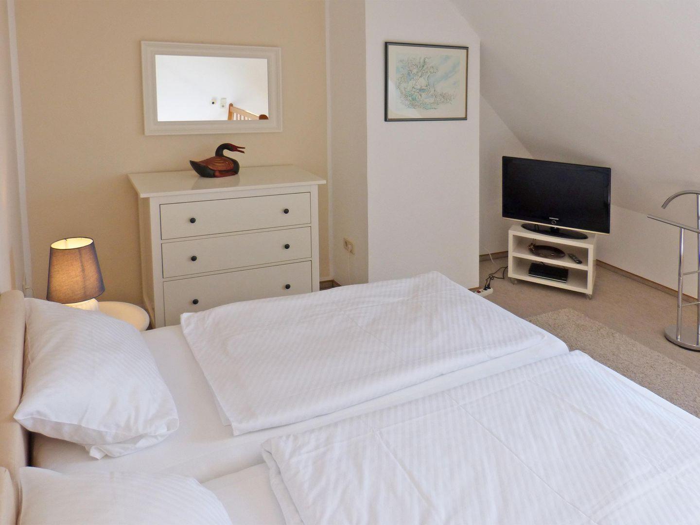 Die Ferienwohnung „Obere Wandelbahn 15/8" im 2. Ober- und Dachgeschoss des Hauses „Obere Wandelbahn 15b" in Wittdün auf Amrum ist eine 2-Zimmer-Maisonette-Ferienwohnung (ca. 55 qm Grundfläche) mit Schlafmöglichkeiten für 1 bis 2 Personen.