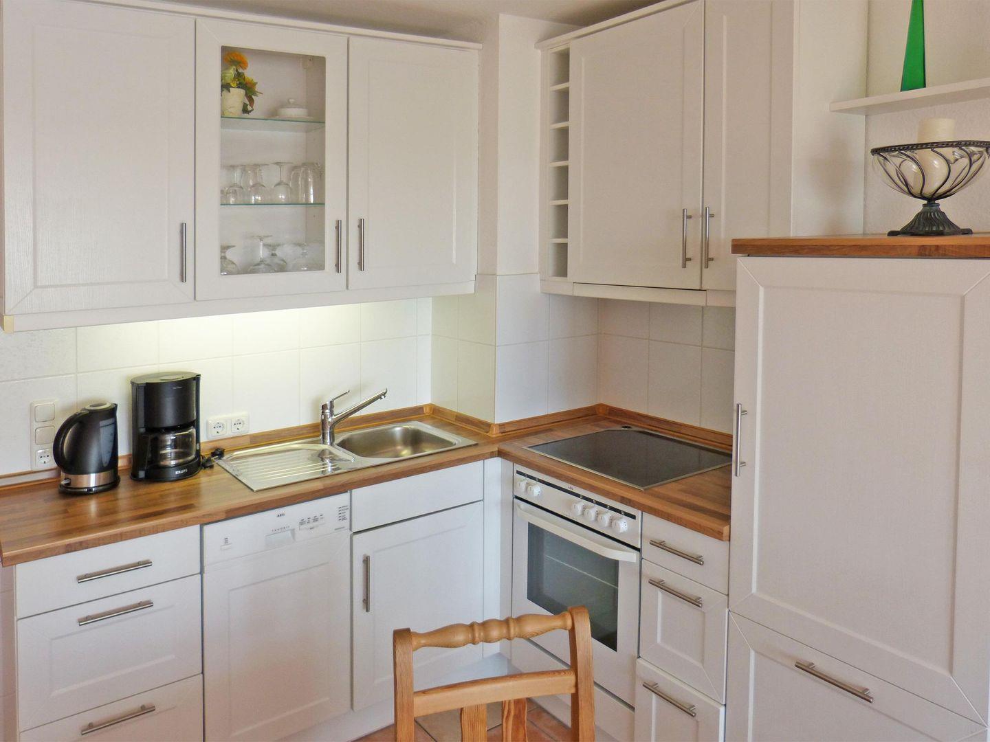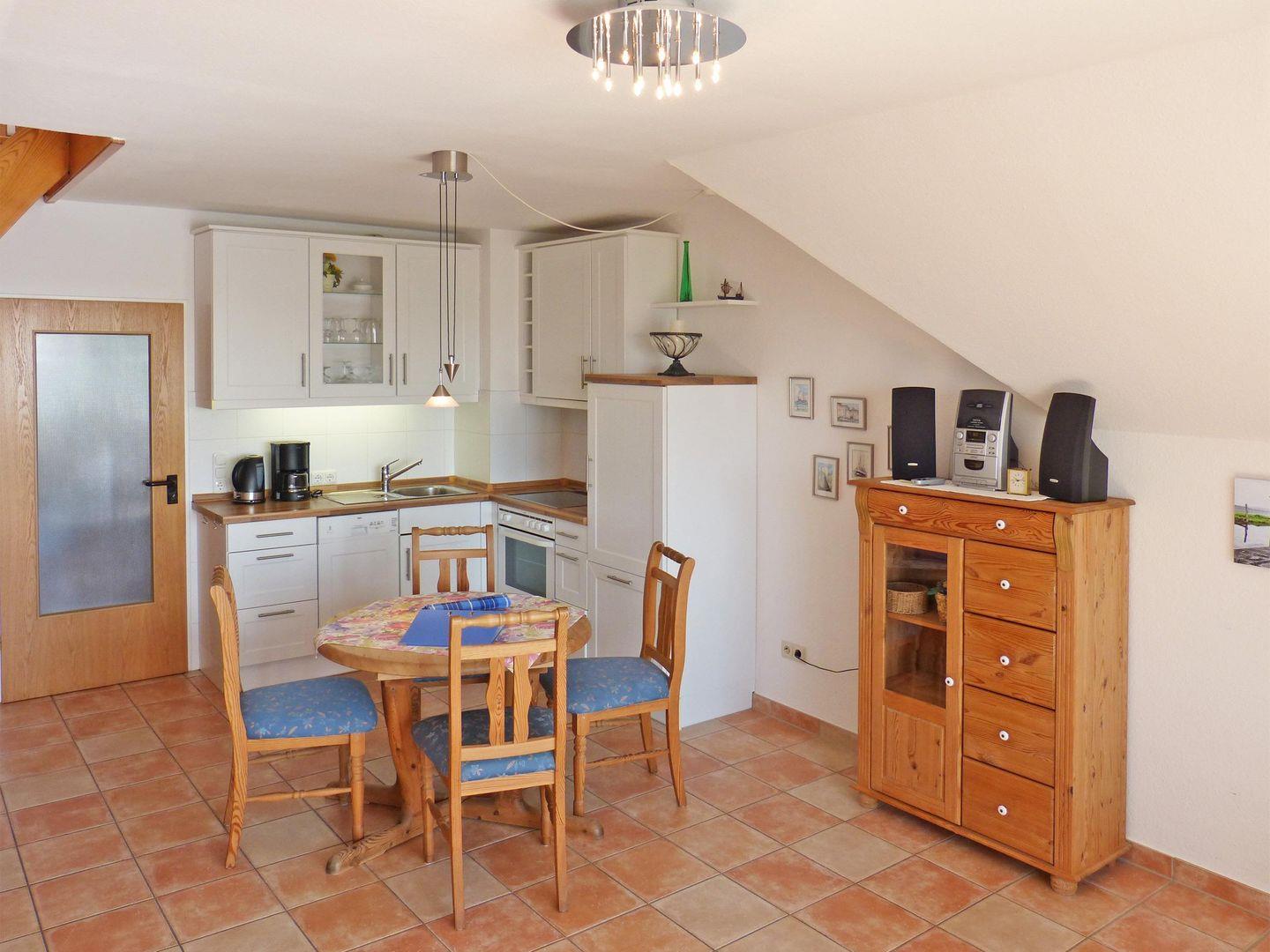 Die Wohnung verfügt über 1 Wohnraum mit WLAN, Sat-TV und offener Küche, 1 Schlafzimmer, 1 Badezimmer mit Dusche und WC; ein verglaster Süd-Balkon (Loggia) mit Möbeln und Meerblick. Ein PKW-Stellplatz ist am Haus.
