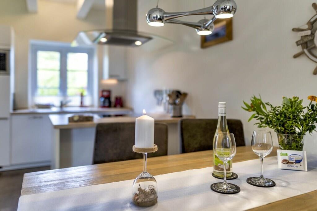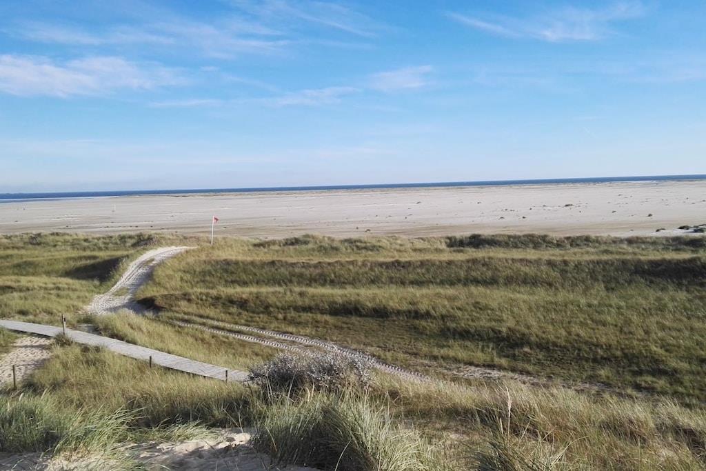 Unsere Ferienwohnung " Leuchtturm" ist unsere mittlere Wohnung im Haus "Wind & Wellen". Im OG befindet sich 1 Schlafzimmer mit einem Boxspringbett, Fernseher und Zugang zum Balkon, sowie ein 2. Schlafzimmer mit zwei Einzelbetten ausgestattet. Badezimmer mit ebenerdiger Dusche und Badewanne. Ein weiteres Gäste WC befindet sich im EG. Die Küche ist mit allem ausgestattet, was man im Urlaub benötigt: Backofen, Mikrowelle, Geschirrspüler, Kühlschrank mit Gefrierfach, SodaStream usw. Wohnraum mit gemütlichem dänischen Holzofen - großer LCD TV, Blueray DVD Player und Sony Hifi Anlage, kostenloses Wlan und Zugang zur Terrasse mit Gartenmöbel, Strandkorb und Gartenliege. Hunde sind Willkommen. Für unsere kleinen Gäste steht ein Spielplatz zur Verfügung, ebenso ein Trampolin, Basketballkorb und Go-Karts.