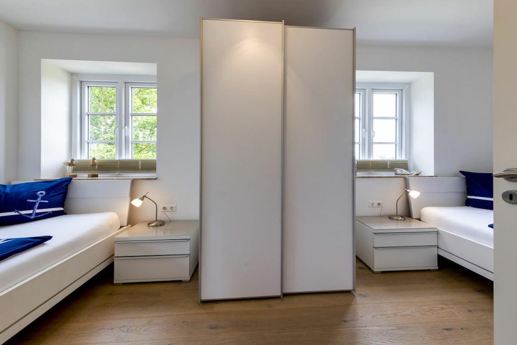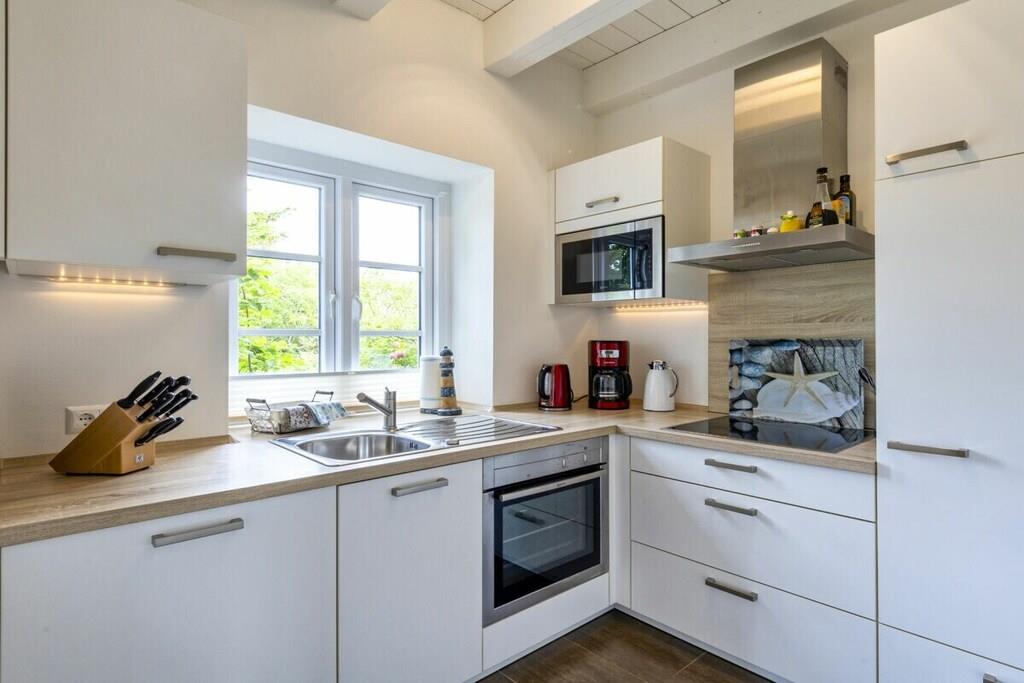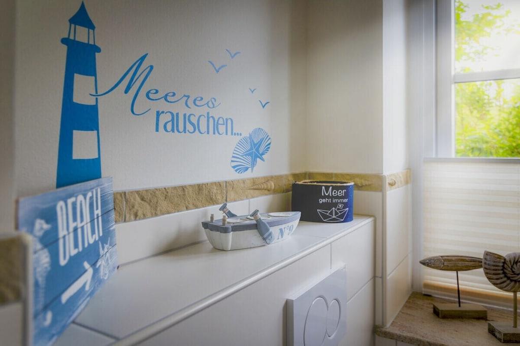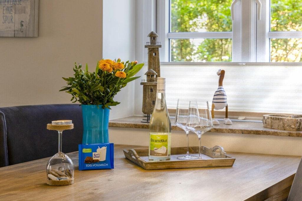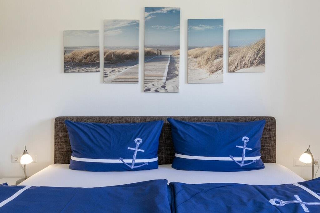 Unsere Ferienwohnung "Hafen" ist unsere rechte äußere Wohnung im Haus "Wind & Wellen". Im OG befindet sich 1 Schlafzimmer mit einem Boxspringbett, Fernseher und Zugang zum Balkon, sowie ein 2. Schlafzimmer mit zwei Einzelbetten ausgestattet. Badezimmer mit ebenerdiger Dusche und Badewanne. Ein weiteres Gäste WC befindet sich im EG. Die Küche ist mit allem ausgestattet, was man im Urlaub benötigt: Backofen, Mikrowelle, Geschirrspüler, Kühlschrank mit Gefrierfach, SodaStream usw. Wohnraum mit gemütlichem dänischen Holzofen - großer LCD TV, Blueray DVD Player und Sony Hifi Anlage, kostenloses Wlan und Zugang zur Terrasse mit Gartenmöbel, Strandkorb und Gartenliege. Hunde sind Willkommen. Für unsere kleinen Gäste steht ein Spielplatz zur Verfügung, ebenso ein Trampolin, Basketballkorb und Go-Karts.