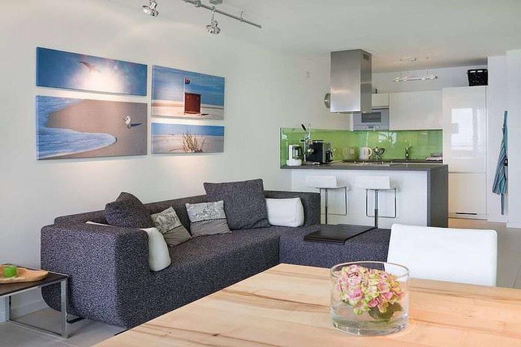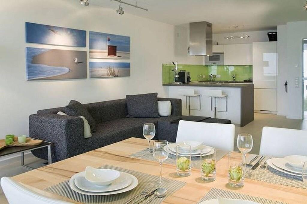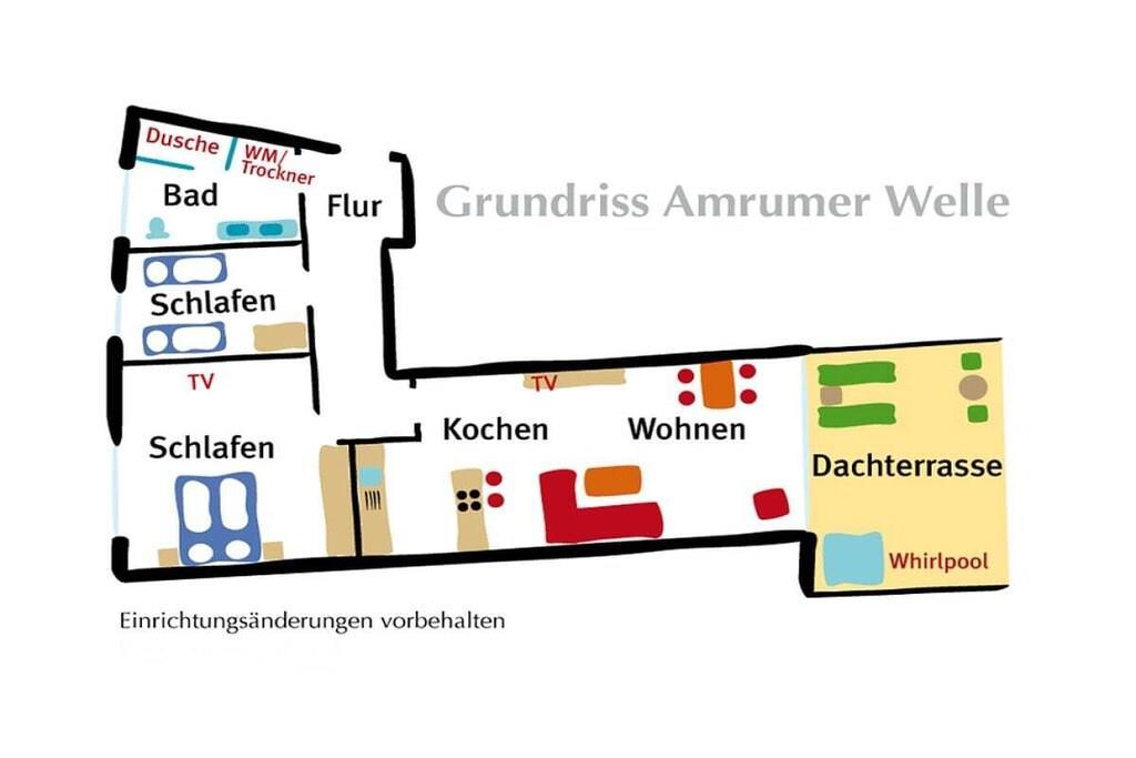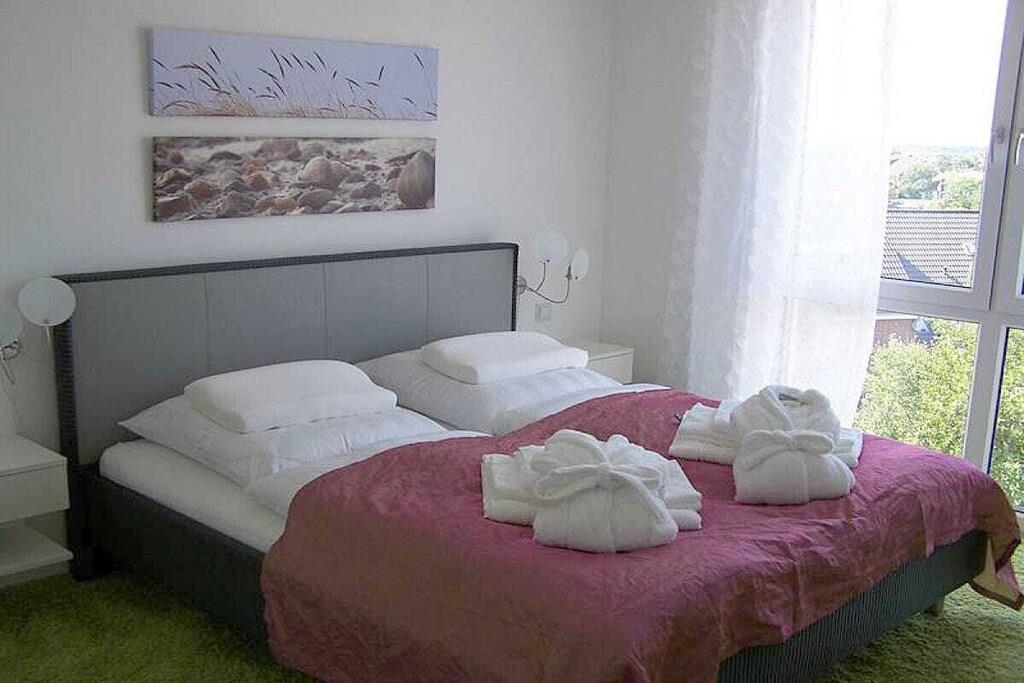 Diese Premium-Ferienwohnung bietet eine stilvolle, gehobene Ausstattung und als Highlight einen beheizten Whirlpool auf der Dachterrasse mit Nordseeblick. Erleben Sie wunderbaren Komfort mit Meerblick aus allen Räumen und wohltuender Fußbodenheizung. Das lichtdurchflutete Wohn-/Esszimmer mit Zugang zur Dachterrasse und komplett ausgestatteter, integrierter Küche mit vollautomatischer Espresso-Maschine wird Ihnen gefallen. Ein Löwe-Flachbild-TV, einBose-Radio/CD und eine Playstation 3 sorgen für kurzweilige Unterhaltung. Die beiden Schlafzimmer bieten einmal 2 Einzelbetten und einmal 1 Doppelbett mit Tempur-Kissen und TV mit DVD-Player - ideal für kuschelige Filmabende! Das moderne Duschbad mit Föhn und 2 Bademänteln ist perfekt für einen entspannten Start in den neuen Urlaubstag.