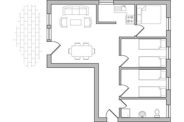 Diese Parterrewohnung bietet viel Platz. Auf 75 qm verteilen sich ein Wohnzimmer mit halboffener Küche , 3 seperate Schlafzimmer sowie ein 2020 neu saniertes Duschbad.
