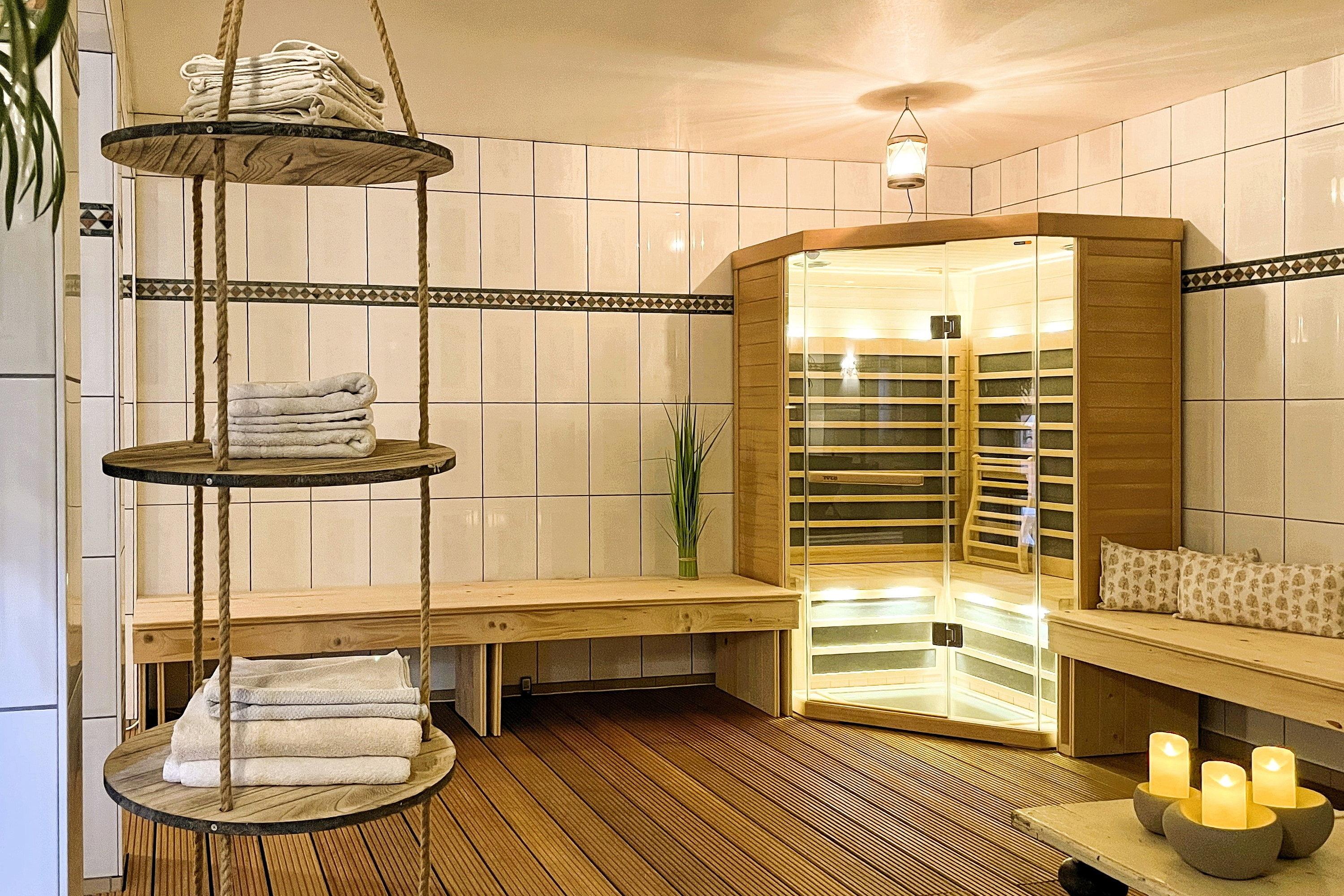 Das Haus Waterkant verfügt über einen Saunabereich mit einer finnischen Sauna und einer Infrarot-Kabine, der von Gästen kostenfrei benutzt werden kann.