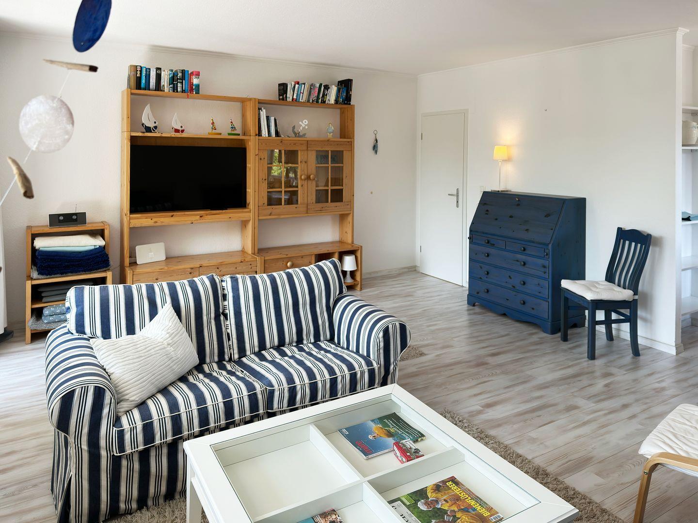 Die Wohnung verfügt über 1 Wohnraum mit WLAN, Sat-TV und offener Küche, 2 Schlafzimmer, 1 Badezimmer mit Dusche/WC und 2 Balkons, davon 1 mit Balkonmöbeln und Strandkorb.