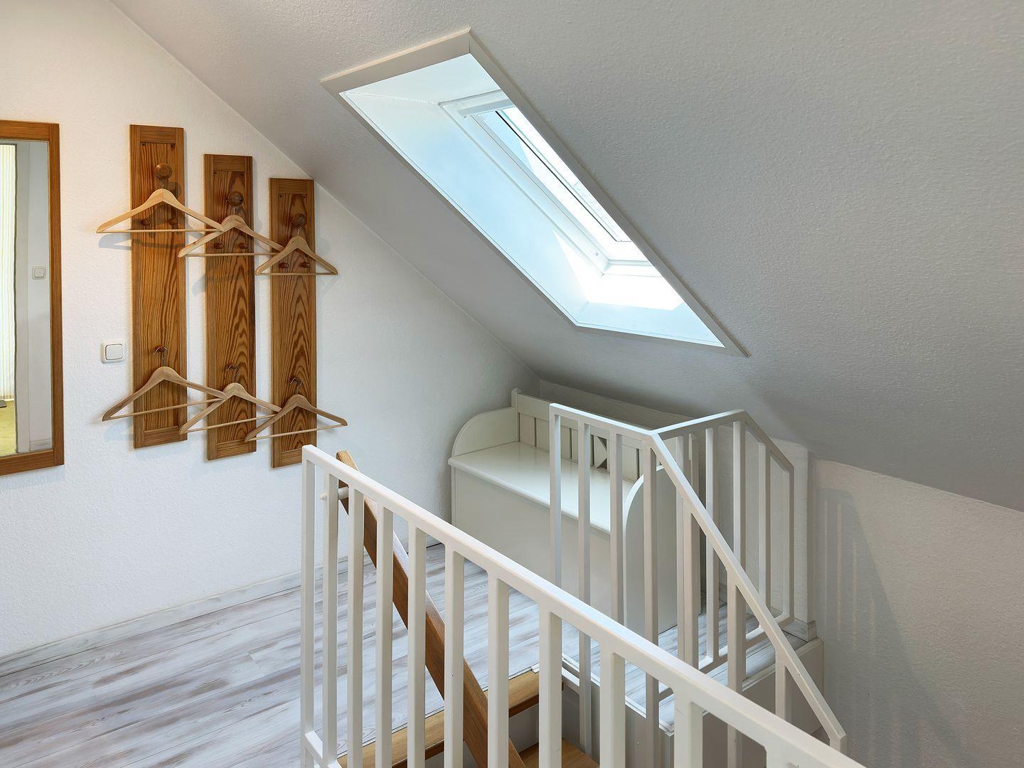 Die Ferienwohnung *Möwenweg 9/28* im 1. und 2. Obergeschoss des Hauses Möwenweg 9 in Wittdün auf Amrum ist eine 3-Zimmer-Ferienwohnung (ca. 88 qm Grundfläche) mit Schlafmöglichkeiten für 1 bis 4 Personen.