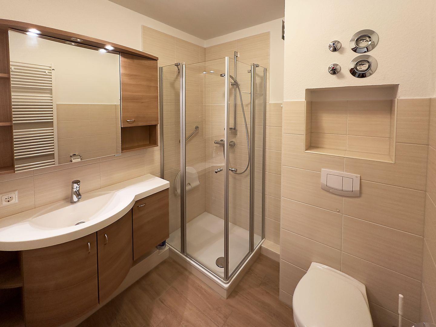 Die Wohnung verfügt über 1 Wohnraum mit Sat-TV, 1 Küche, 1 Schlafzimmer, 1 Badezimmer mit Dusche und WC; ein überdachter Nord-Ost-Balkon mit Gartenmöbeln (Mai bis September).