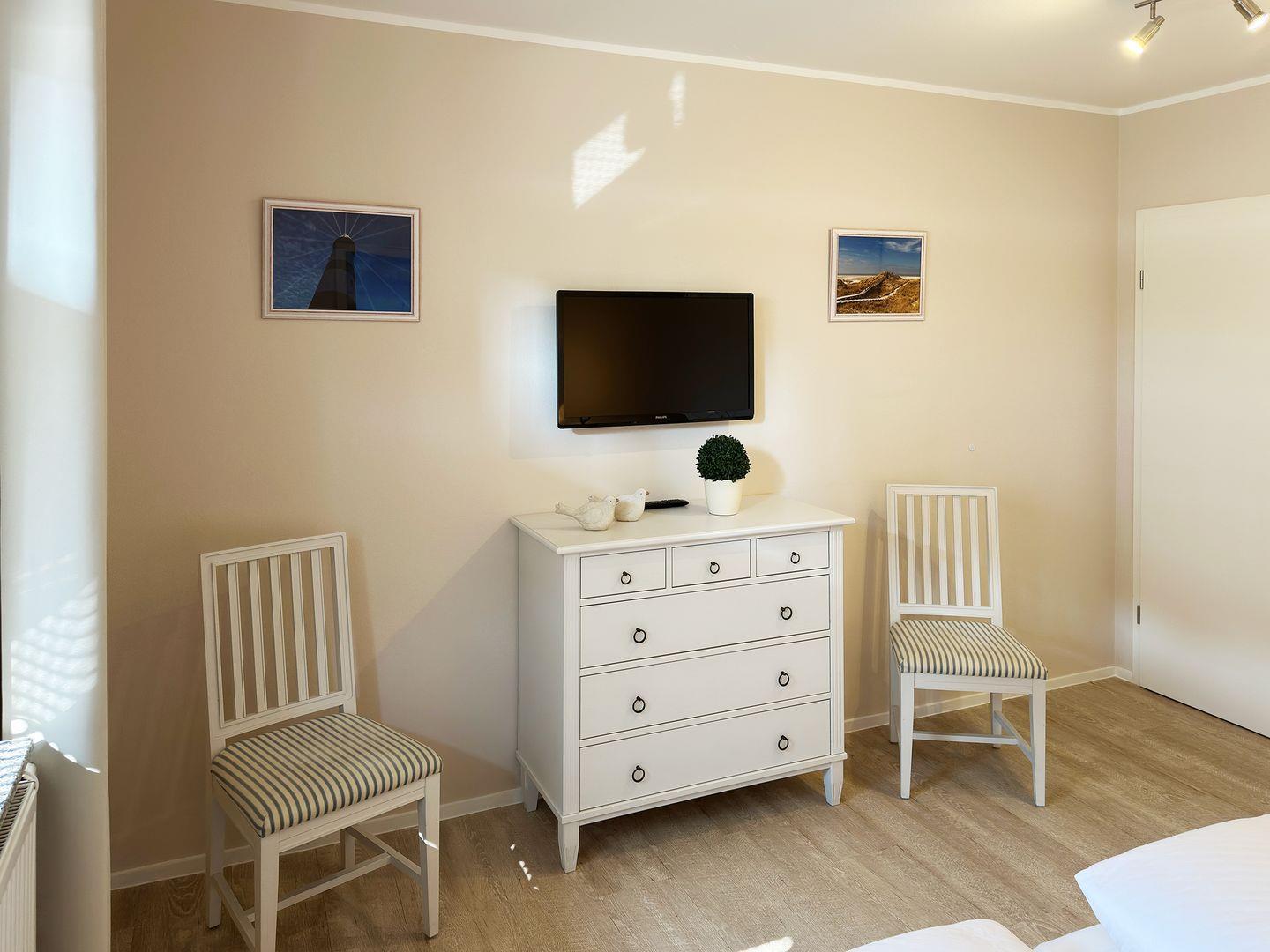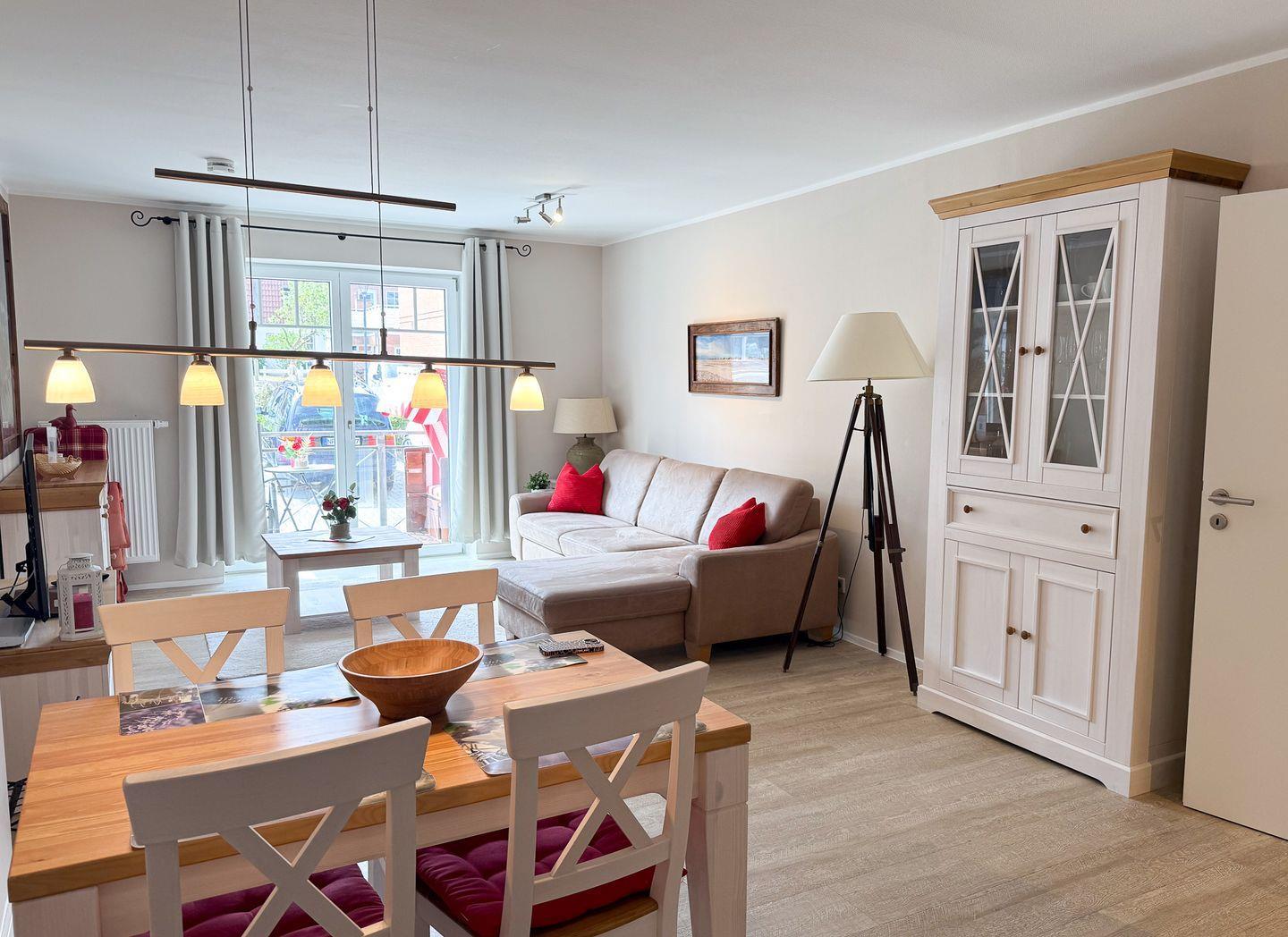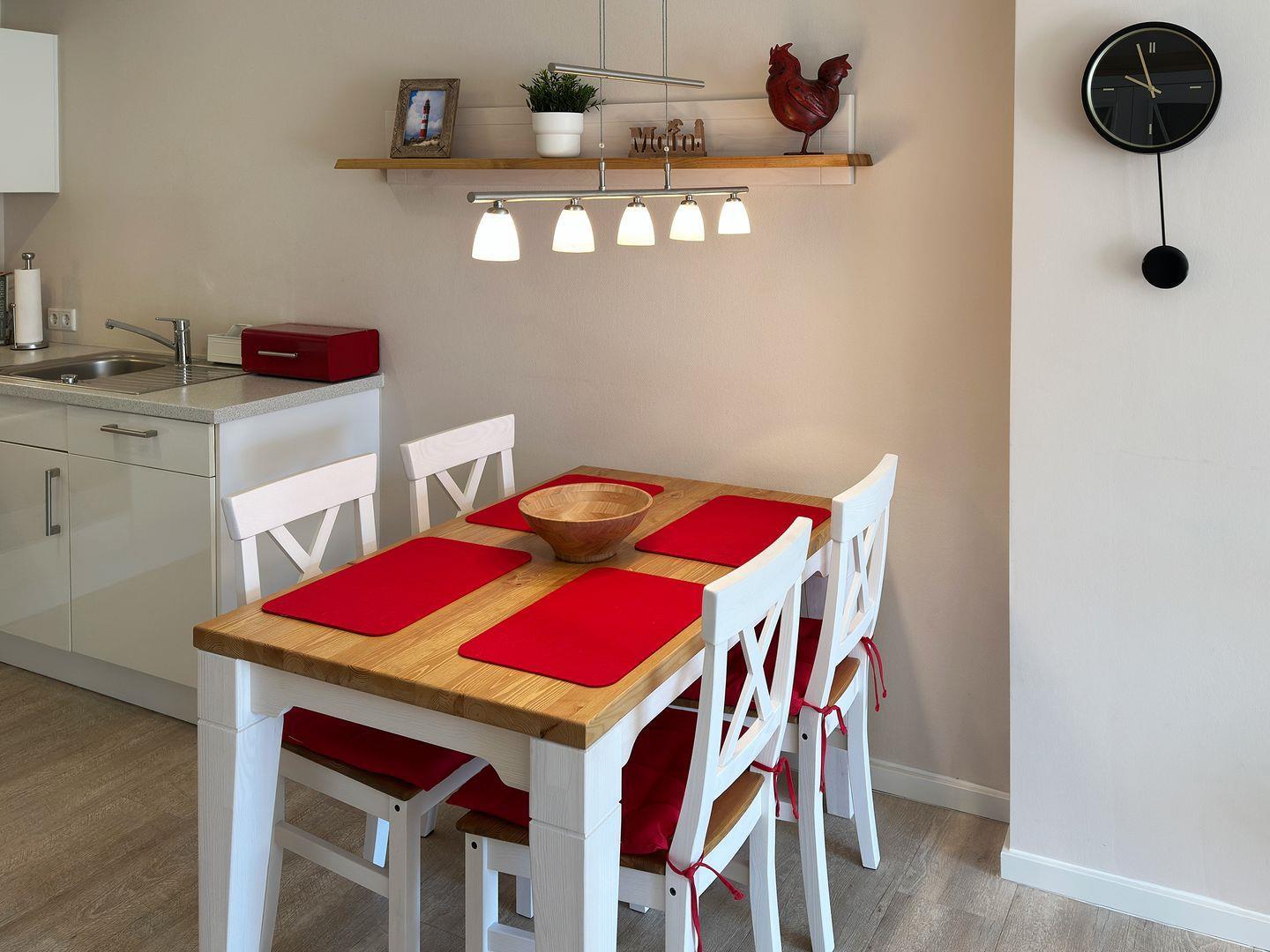 Die Wohnung verfügt über 1 Wohnraum mit WLAN, Sat-TV und offener Küche, 1 Schlafzimmer, 1 Badezimmer mit Dusche und WC; ein offener Süd-Balkon mit Möbeln (April bis Oktober).