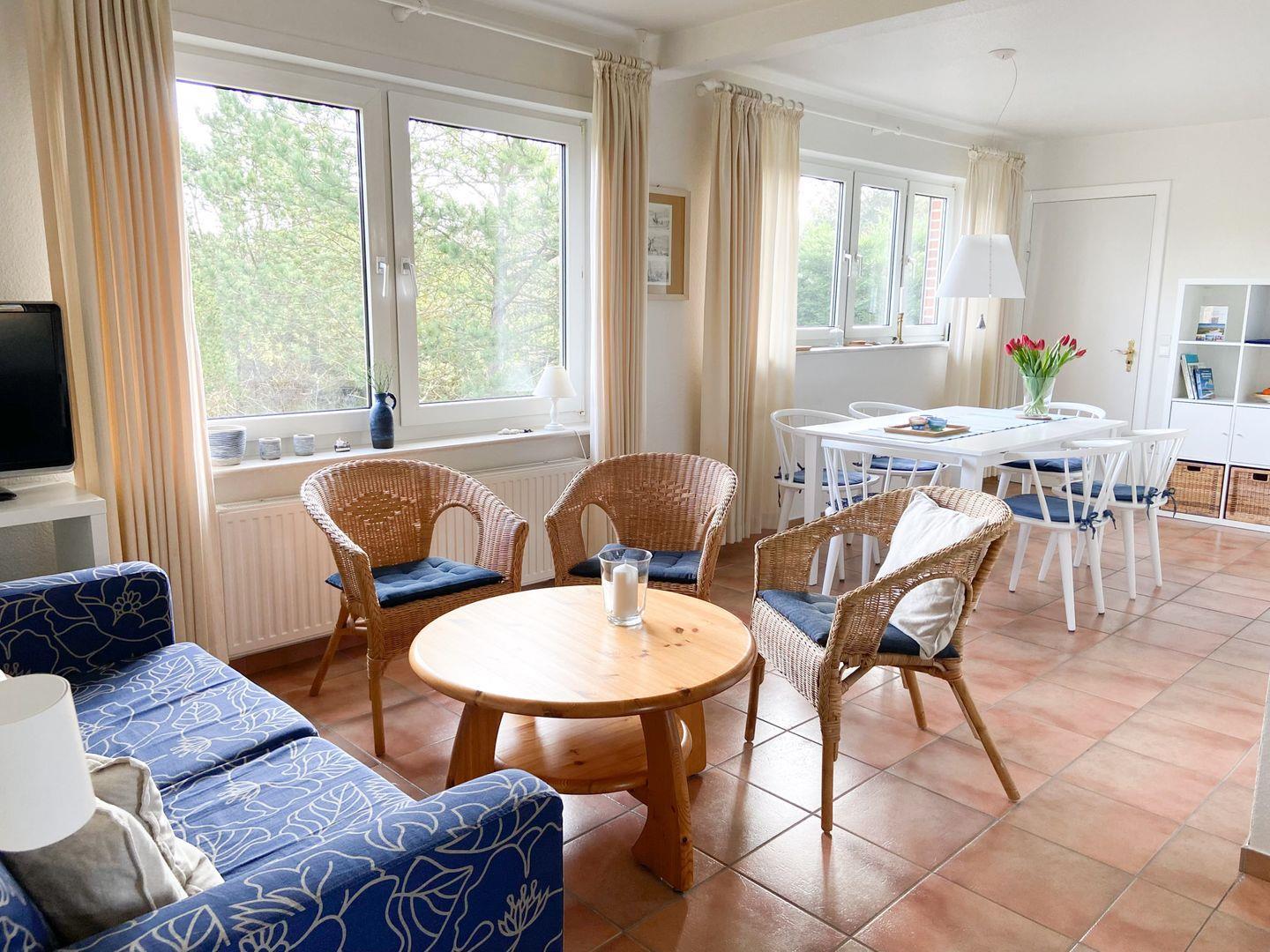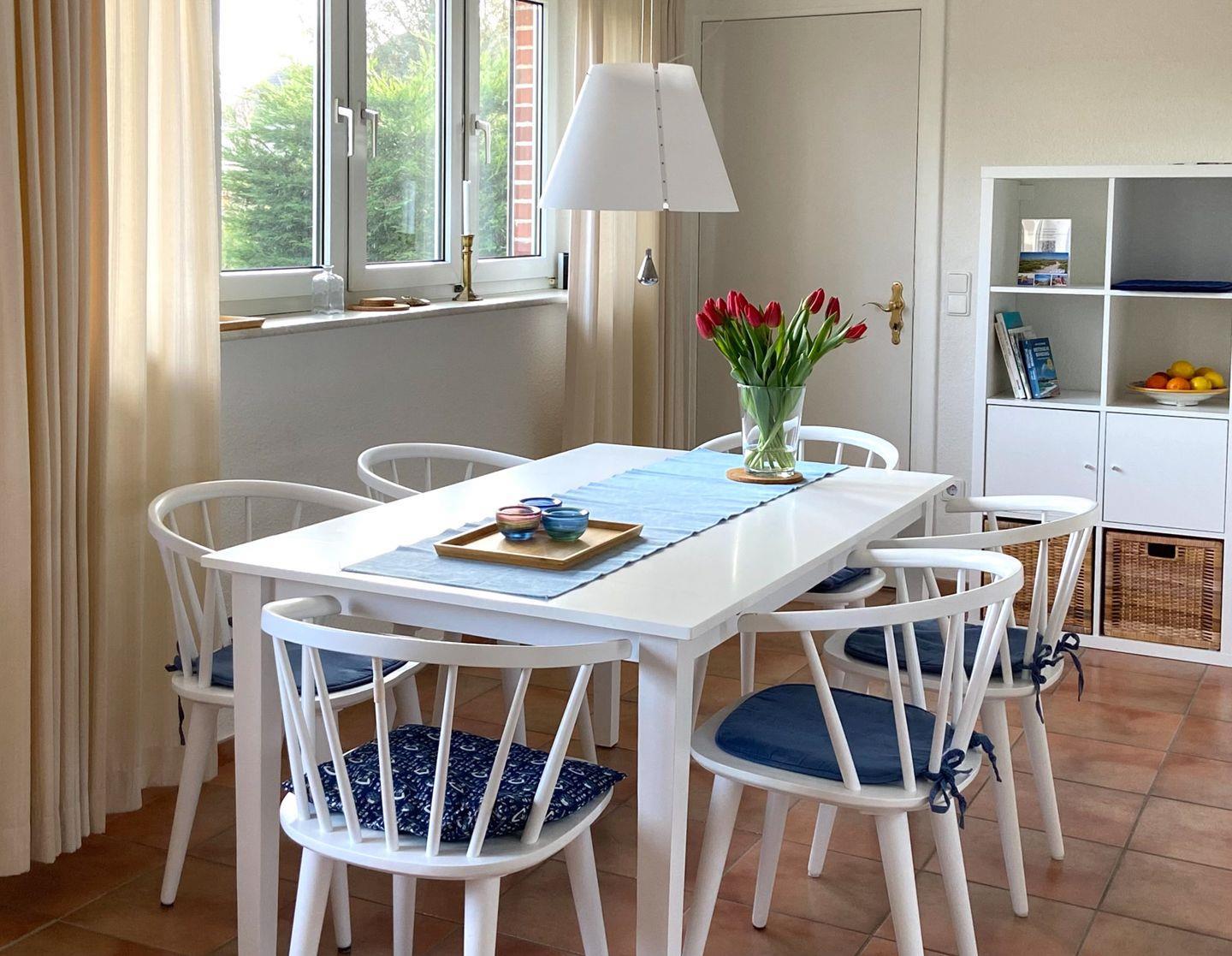 Das 4-Zimmer-*Ferienhaus am Kniep* (ca. 77 qm Grundfläche) in Wittdün auf Amrum bietet Schlafmöglichkeiten für 4 bis 6 Personen.