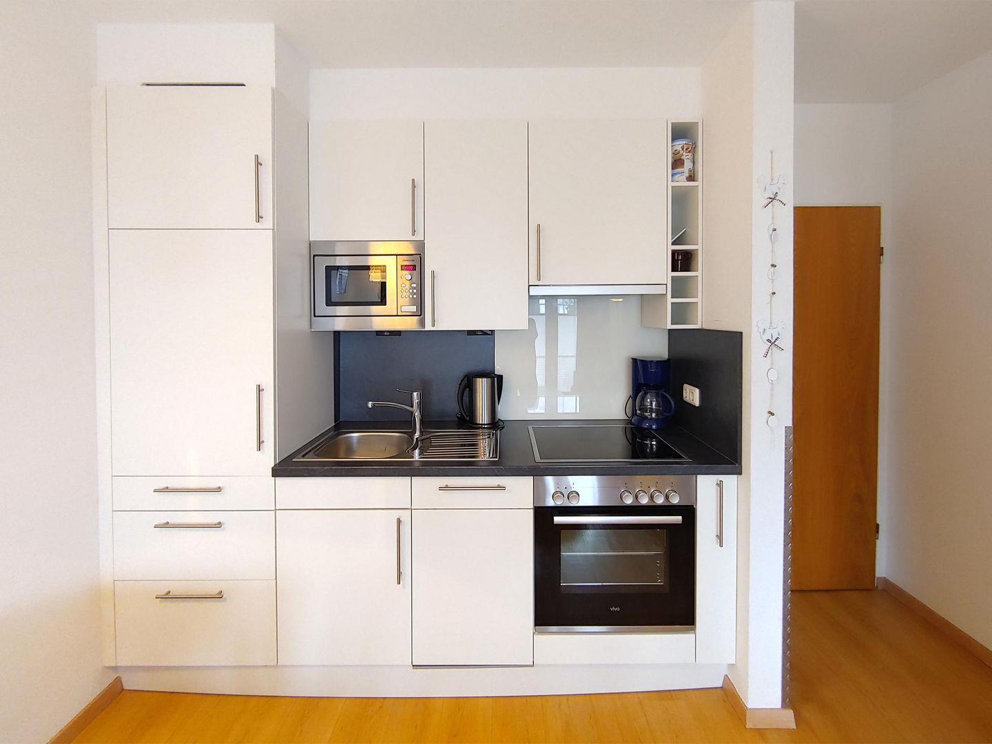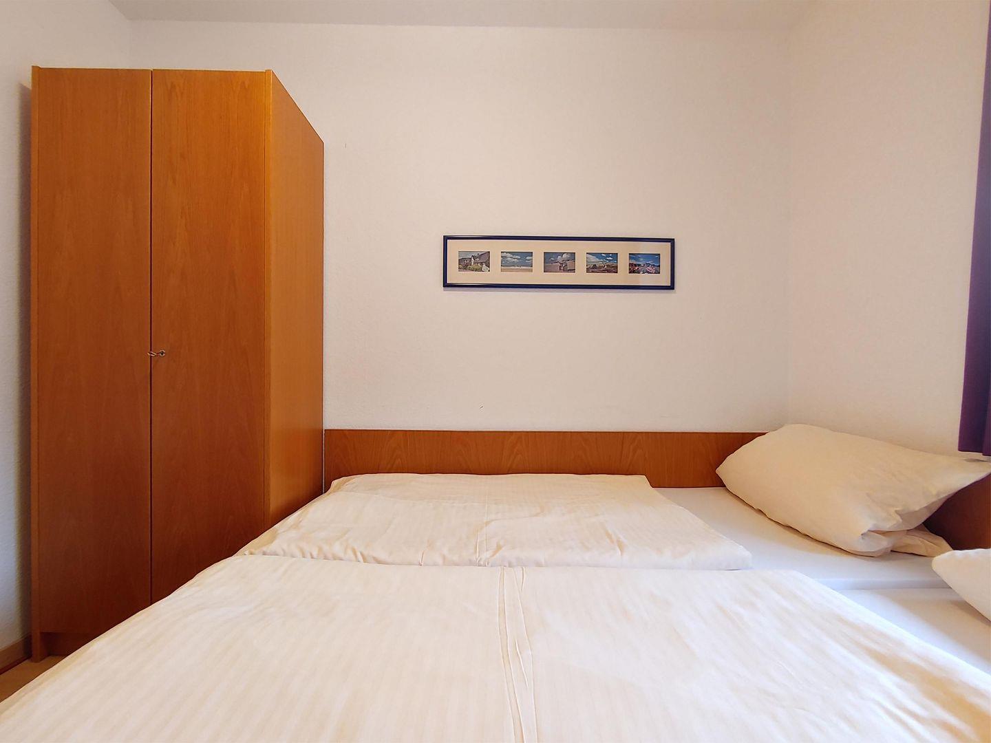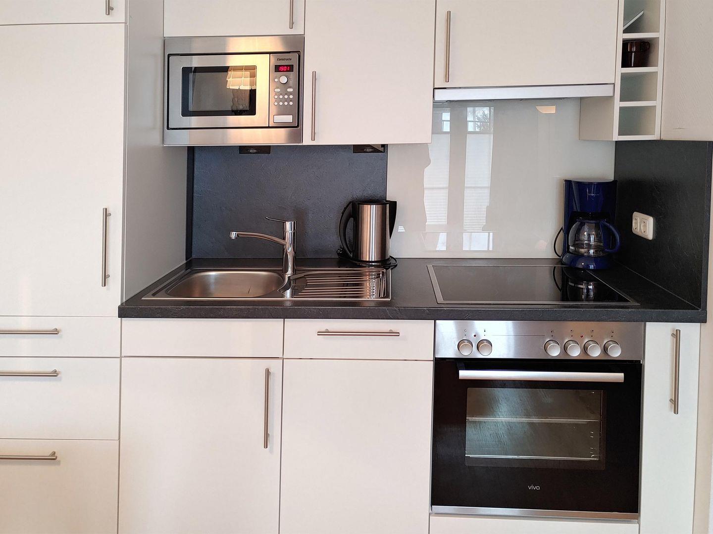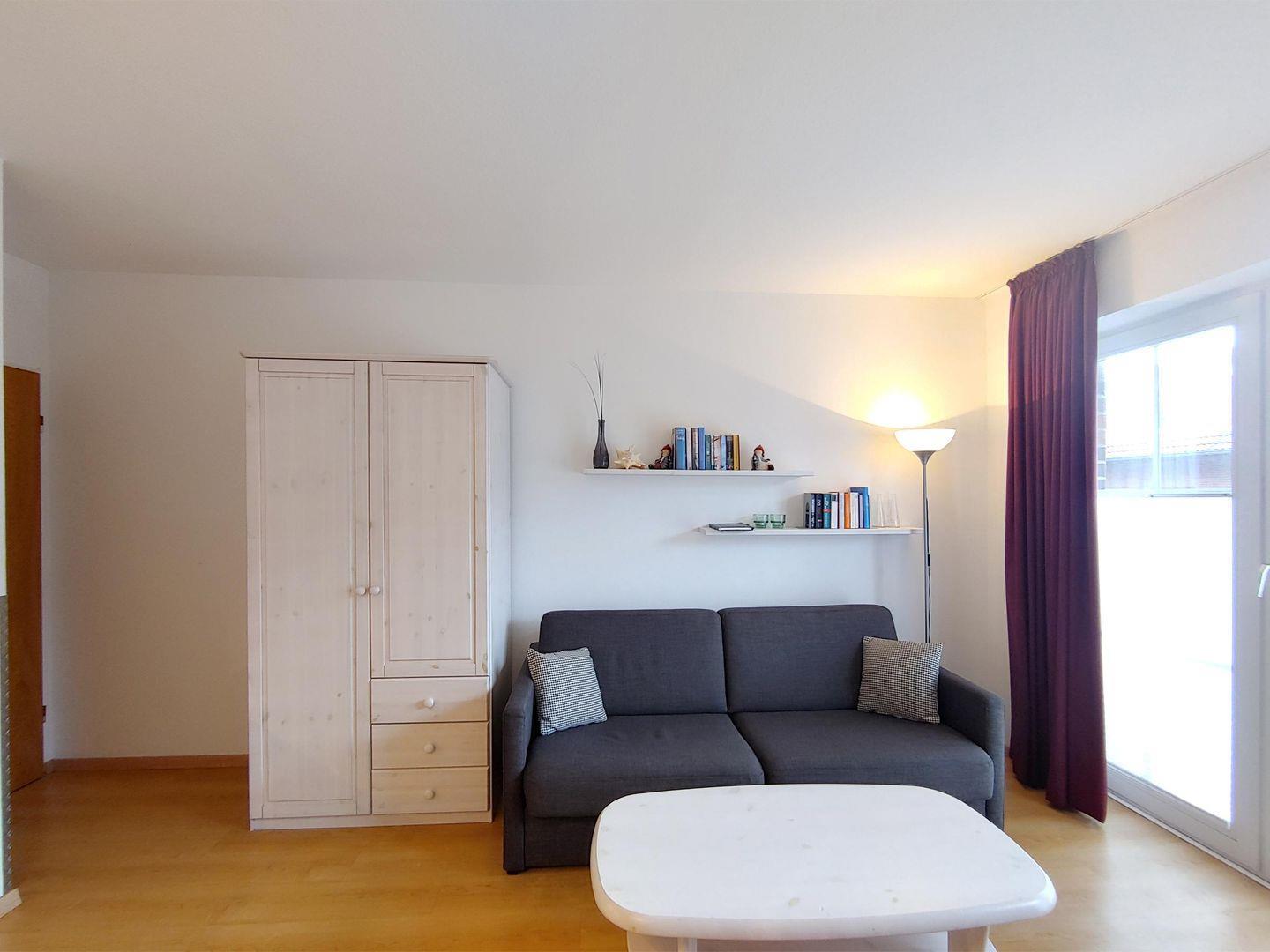 Die Wohnung verfügt über 1 Wohnraum mit WLAN, Sat-TV und offener Küchenzeile, 1 Schlafzimmer, 1 Badezimmer mit Dusche und WC; Süd-Terrasse mit Gartenmöbeln (April bis Oktober) und Blick durch die Häuser aufs Meer. Im Keller befinden sich eine Münz-Waschmaschine und ein Münz-Trockner zur Gemeinschaftsnutzung. Ein PKW-Stellplatz ist vorhanden.