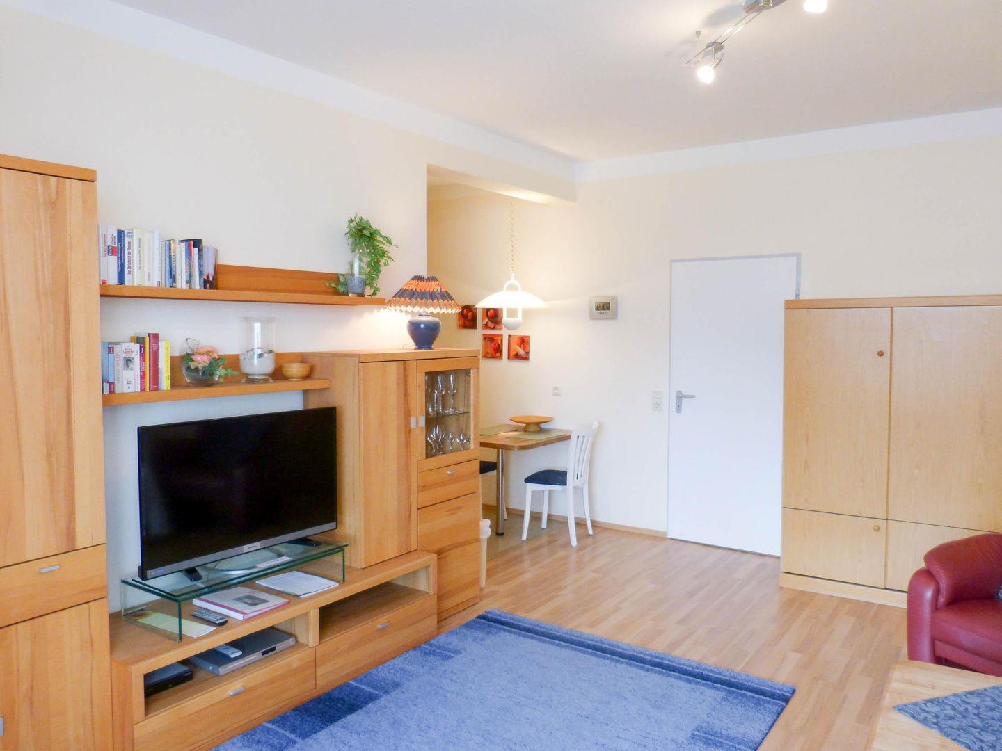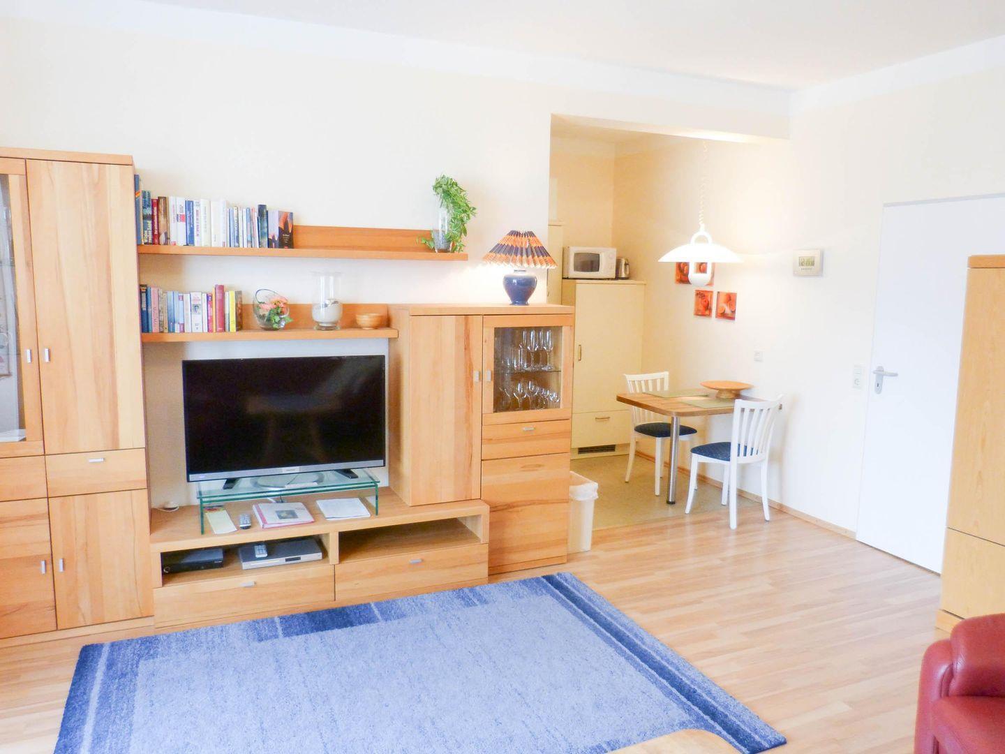 Die Wohnung verfügt über 1 Wohnraum mit WLAN, Sat-TV und offener Küche, 1 Schlafzimmer, 1 Badezimmer mit Dusche und WC.