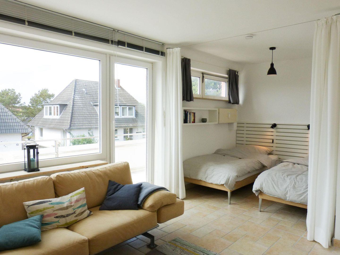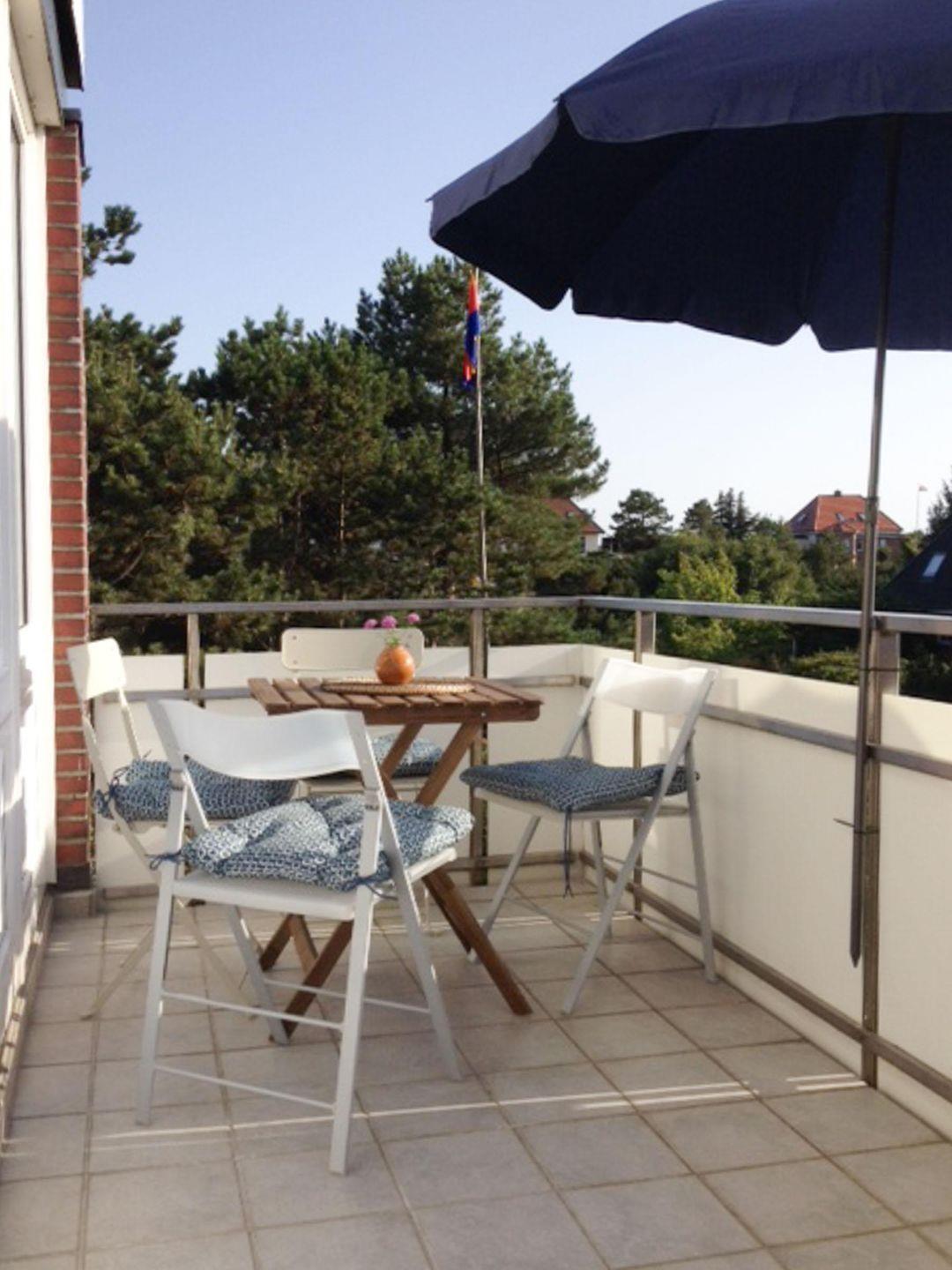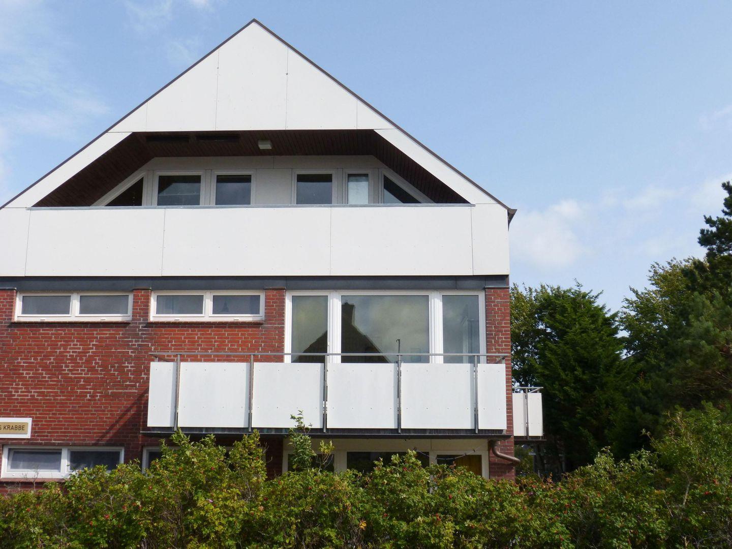Moderne 2-Zimmer-Ferienwohnung Krabbe 25 mit Balkon, WLAN und Blick auf die Dünen in Wittdün auf Amrum.