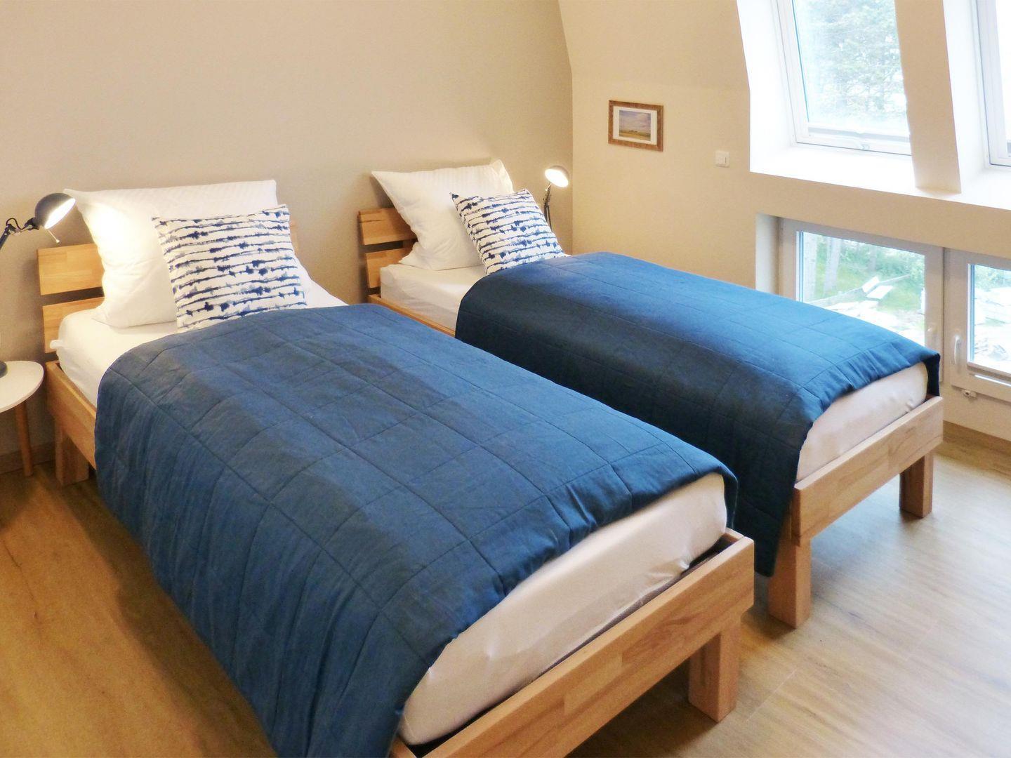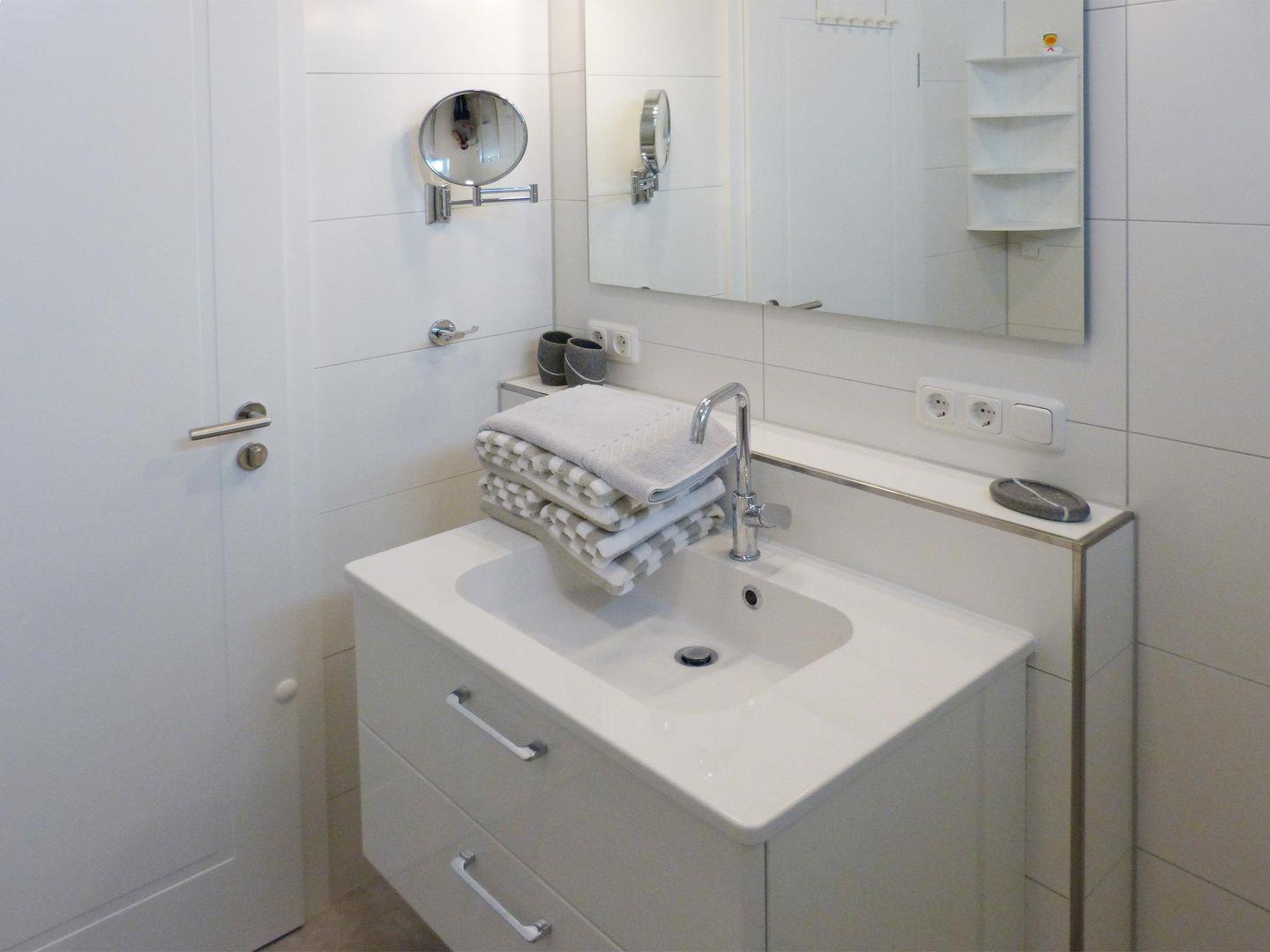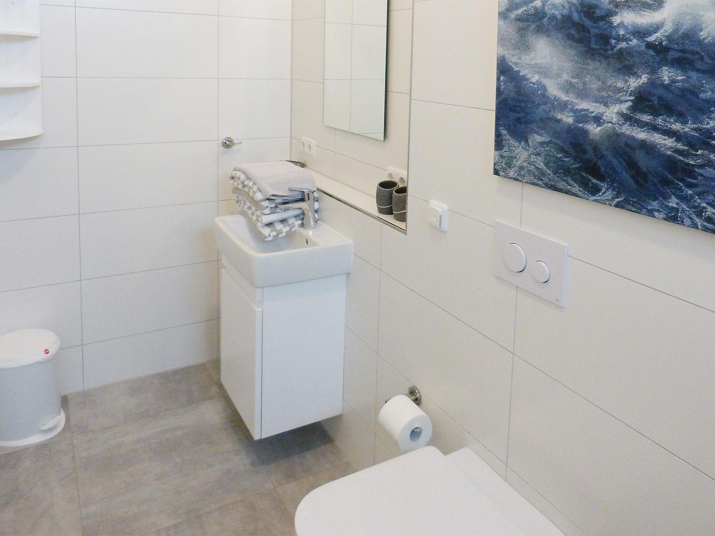Die Wohnung verfügt über 1 Wohnraum mit WLAN, Sat-TV und offener Küche, 2 Schlafzimmer, 2 Badezimmer mit Dusche und WC „en suite“; 1 Süd-Balkon vom Wohnzimmer mit Blick bis zum Kniepsand und die Nordsee, 1 Nord-Balkon mit Meerblick vom Esszimmer, Balkonmöbel (April – Oktober). Im Keller befinden sich eine Münz-Waschmaschine und ein Münz-Trockner zur Gemeinschaftsnutzung. Eigener PKW-Stellplatz in der Nähe des Hauses, Unterstellmöglichkeit für Fahrräder. Nur wenige Meter vom Meer entfernt.