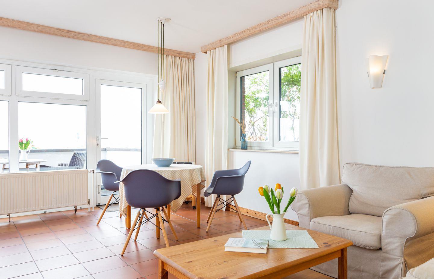 Gemütliche Ferienwohnung in Wittdün mit Meerblick und Balkon, ideal für einen erholsamen Urlaub am Wattenmeer.