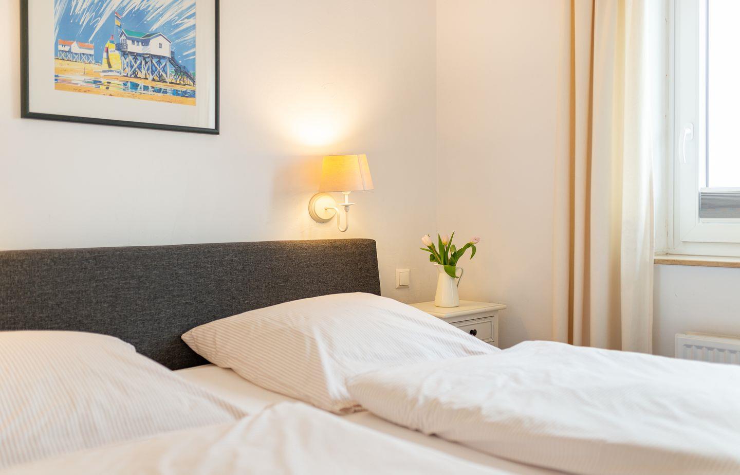 Die Wohnung 2 liegt in der ersten Etage im Ferienhaus Jungnamen Sand und zeigt Richtung Nordwesten. Es finden 2 Personen auf 55 qm geschmackvoll eingerichteter Wohnfläche genügend Platz. Die Wohnung hat einen wunderschönen Meerblick.
