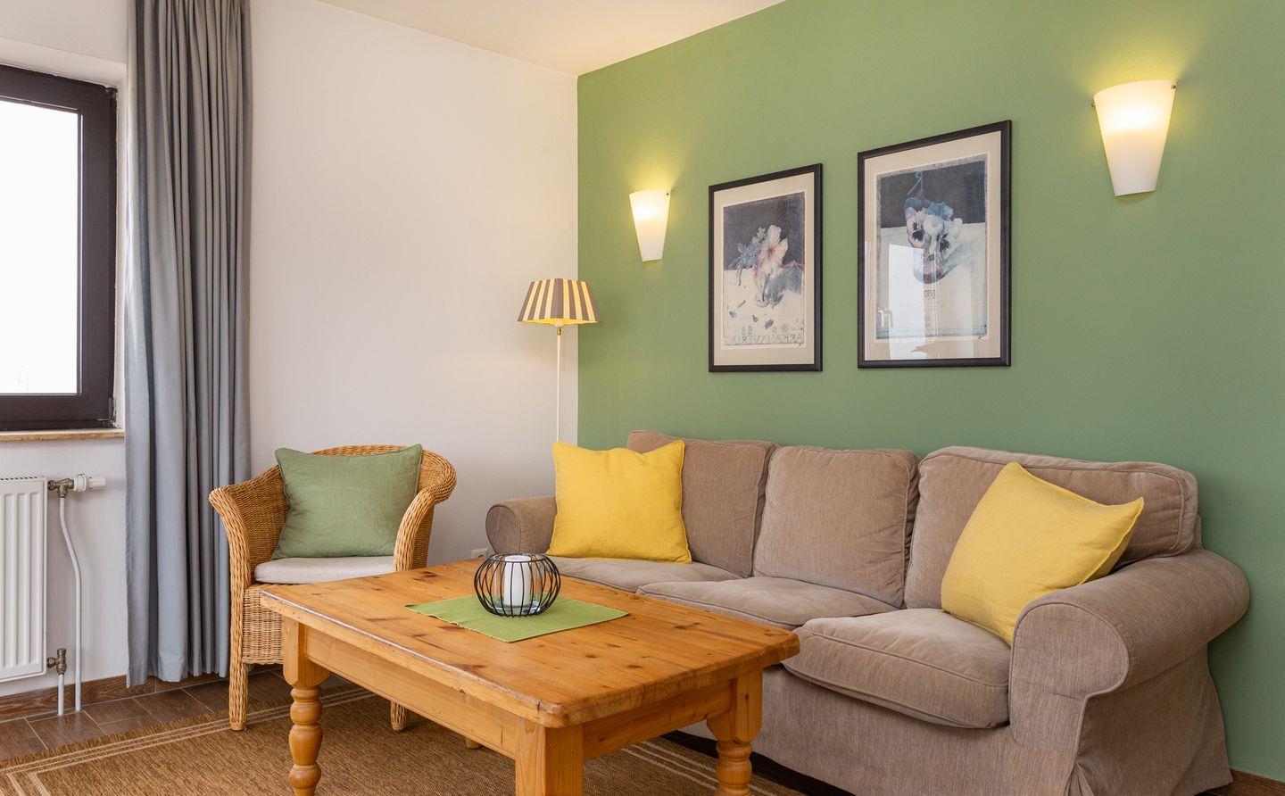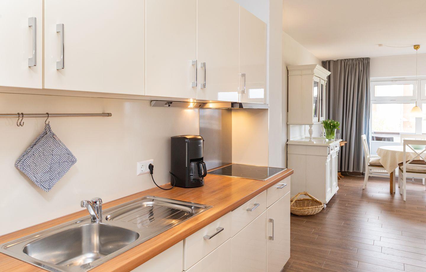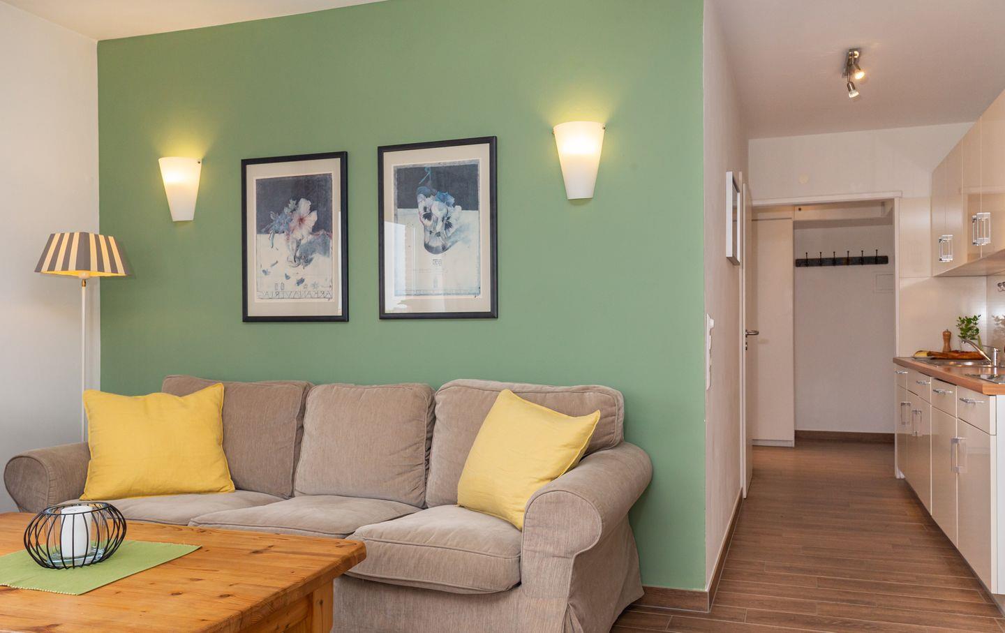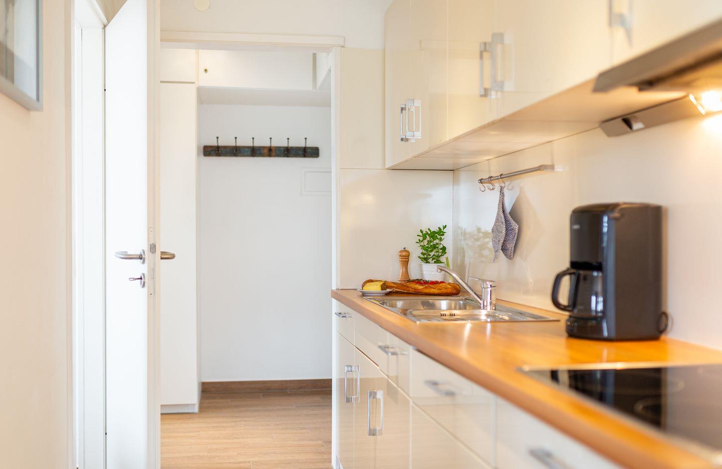 Die Wohnung verfügt über ein Wohnzimmer mit separatem Schlafzimmer mit Boxspringbett, eine voll ausgestattete Küche mit Geschirrspüler, ein Duschbad, einen Balkon mit Meerblick, Satelliten TV und WLAN. Ein Parkplatz ist ebenfalls vorhanden. Gepflegte Fahrräder stehen zu Ihrer freien Nutzung bereit.