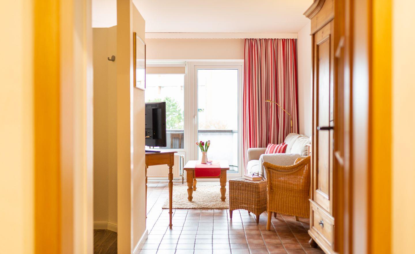 Die Wohnung 3 liegt in der ersten Etage im Ferienhaus Jungnamen Sand und zeigt Richtung Westen. Es finden 2 Personen auf 43 qm geschmackvoll eingerichteter Wohnfläche genügend Platz. Die Wohnung hat einen wunderschönen Meerblick.