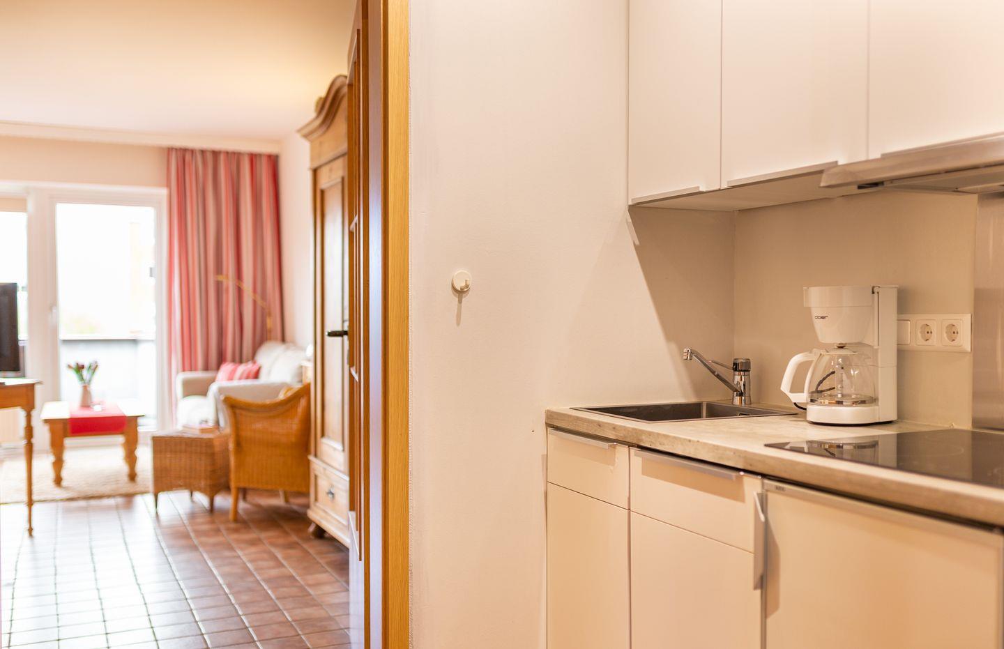 Die Wohnung verfügt über ein Wohnzimmer mit separatem Schlafzimmer mit Boxspringbett, eine voll ausgestattete Küche mit Geschirrspüler, ein Duschbad, einen Balkon mit Meerblick, Satelliten TV und WLAN.