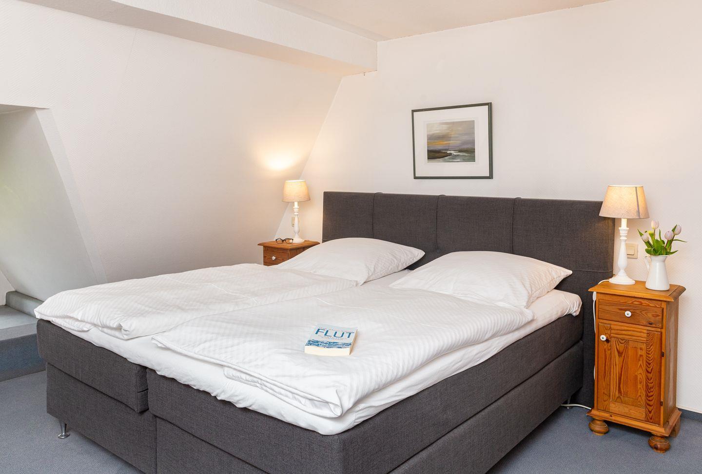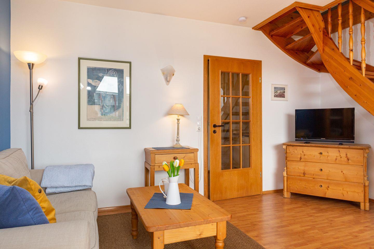 Die Wohnung 9 liegt in der zweiten Etage im Ferienhaus Jungnamen Sand und zeigt Richtung Westen. Es finden 2 Personen auf 66 qm geschmackvoll eingerichteter Wohnfläche genügend Platz. Die Wohnung hat einen wunderschönen Meerblick.Die Ferienwohnung erstreckt sich über zwei Ebenen.