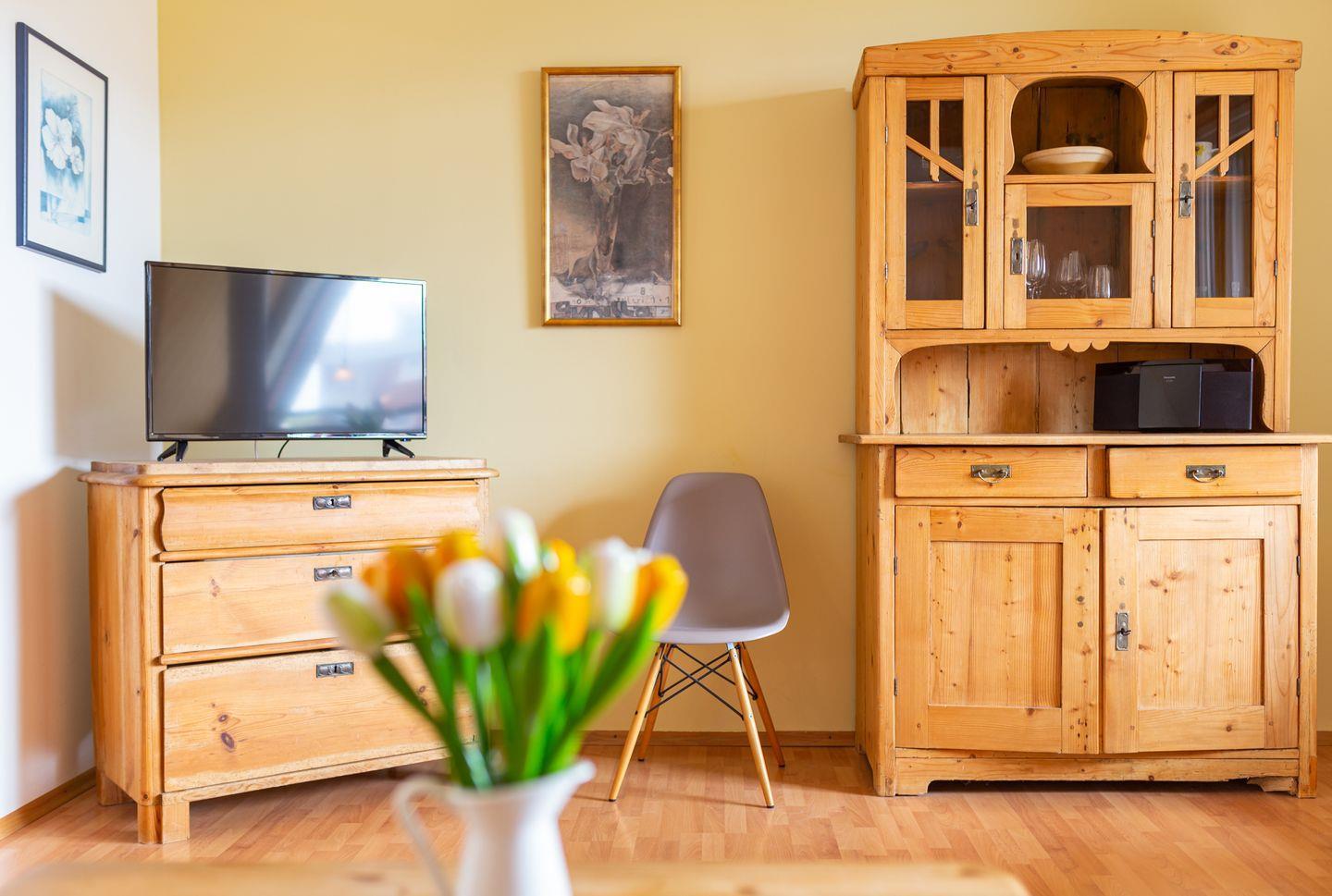 Die Wohnung verfügt über ein Wohnzimmer mit separatem Schlafzimmer mit Boxspringbett, einem weiteren Schlafzimmer mit Einzelbett, eine voll ausgestattete Küche mit Geschirrspüler, ein Duschbad, einen Balkon mit Meerblick und WLAN. Wohnzimmer und Schlafzimmer sind jeweils mit einem Flachbild TV Gerät ausgestattet. Ein Parkplatz ist ebenfalls vorhanden. Gepflegte Fahrräder stehen zu Ihrer freien Nutzung bereit.