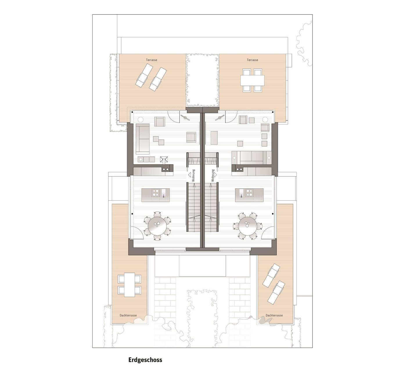 - Terrassen sind mit Sitzmöbeln, Liegen und Sonnenschirm ausgestattet