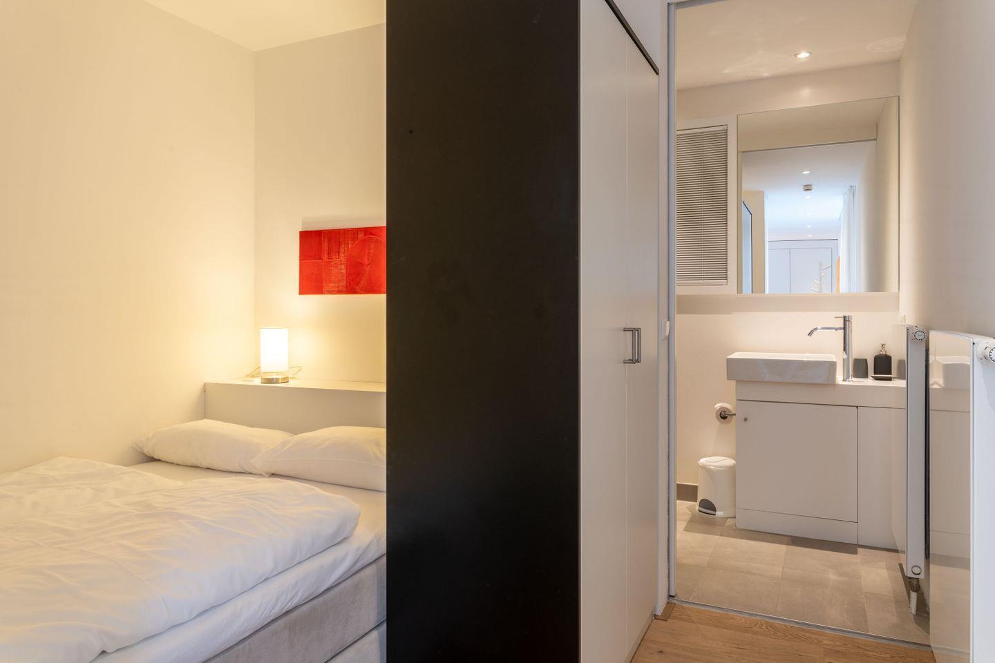 Im Eingangsgeschoss befindet sich dieses kleine Appartement mit Bad, Küche, Wohnraum und Schlafkoje für 2 Personen. Dieses Appartement kann der Wohnung im Erdgeschoss zugeschaltet werden und ist für Kinder und auch für ältere Gäste sehr empfehlenswert.