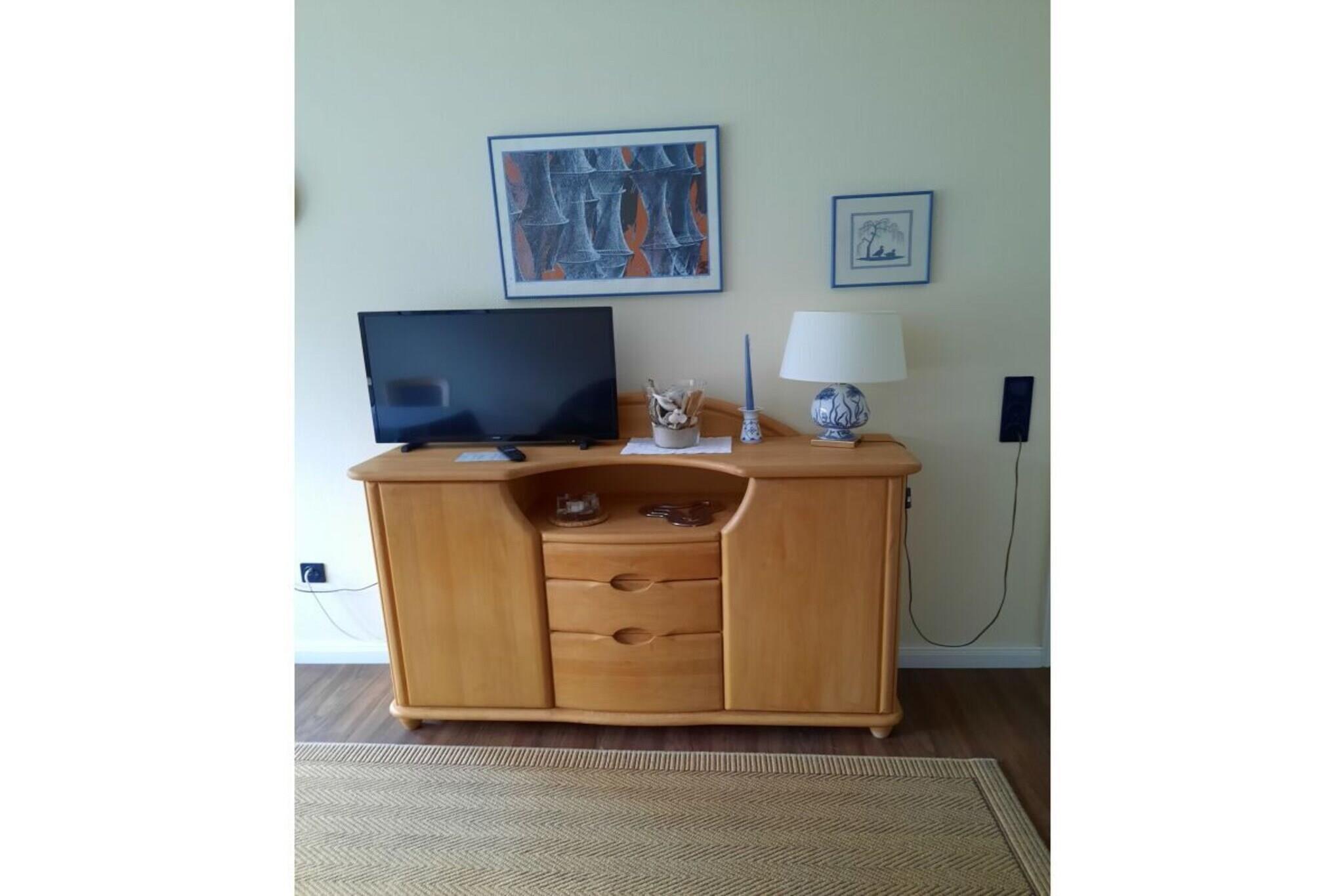 Die renovierte Ferienwohnung befindet sich auf der straßenabgewandten Seite und ist daher ruhig gelegen. Es verfügt über Wohnraum, Schlafzimmer, Flur, DU/WC, Schlafzimmer und abgeschlossener Küche. Im Wohnzimmer befindet sich eine hochwertige Couch, die als Doppelbett nutzbar ist. SAT/TV und Radio sind vorhanden. Die Küche ist komplett ausgestattet mit Cerankochfeld, Backofen, Geschirrspüler, Kühlschrank mit Gefrierfach, Wasserkocher, Mixer, Kaffeemaschine und Toaster. Der Balkon ist ausgestattet mit Tisch und vier Stühlen sowie mit einem Sonnenschirm. Ein PKW-Stellplatz ist für sie in der Tiefgarage reserviert. Münzwaschmaschine und Münztrockner sind im Keller vorhanden.