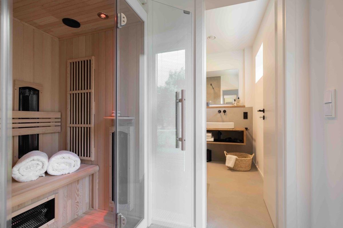 In unseren Ferienhäusern findet ihr alles, was ihr für einen erholsamen Schlaf braucht. Die Betten sind komfortabel und garantieren einen perfekten Start in den Tag. Jedes Ferienhaus verfügt zudem über zwei Badezimmer mit jeweils einer Dusche sowie einer Infrarotsauna – perfekt zum Abschalten und Entspannen.
