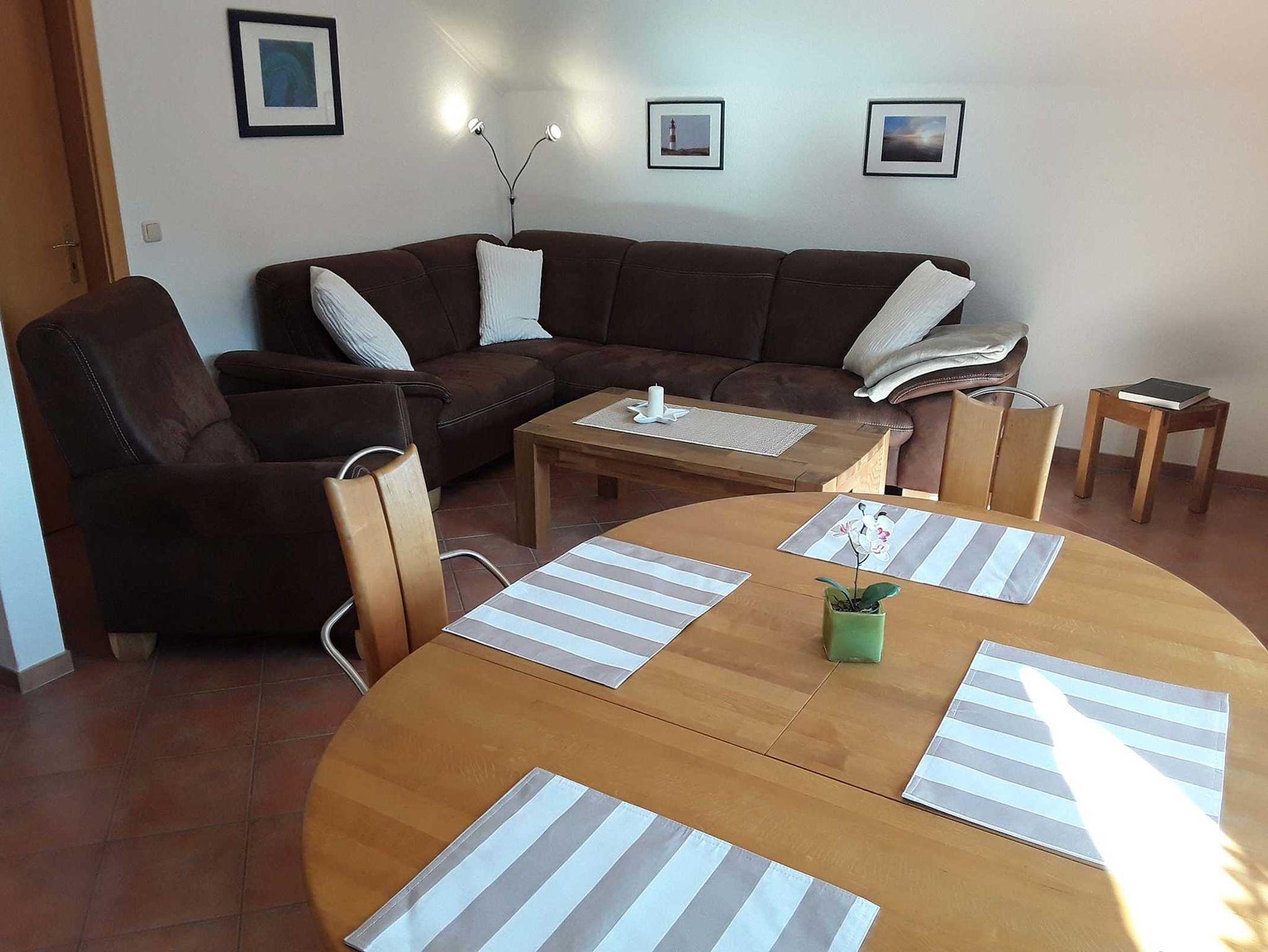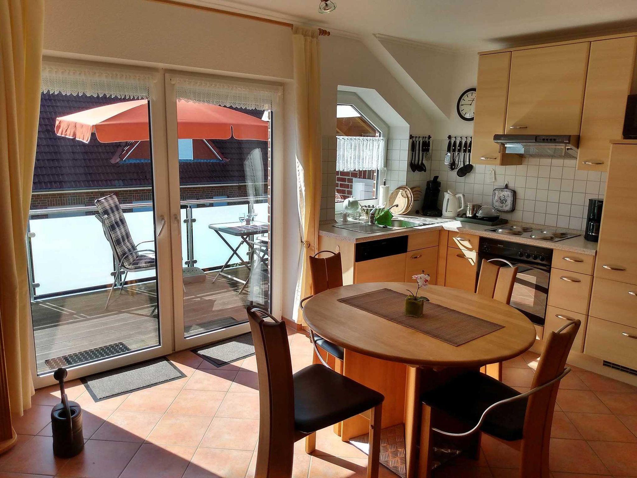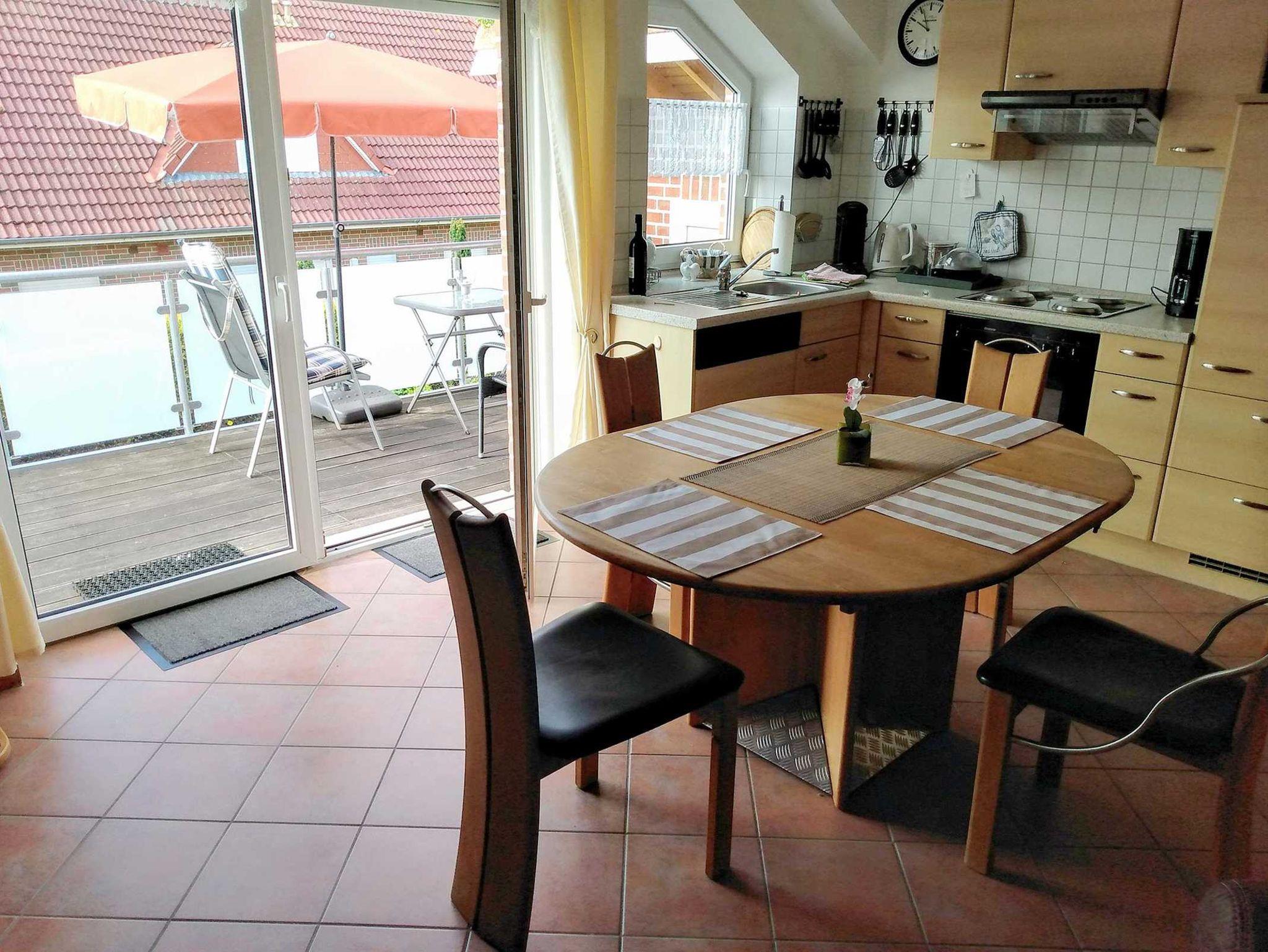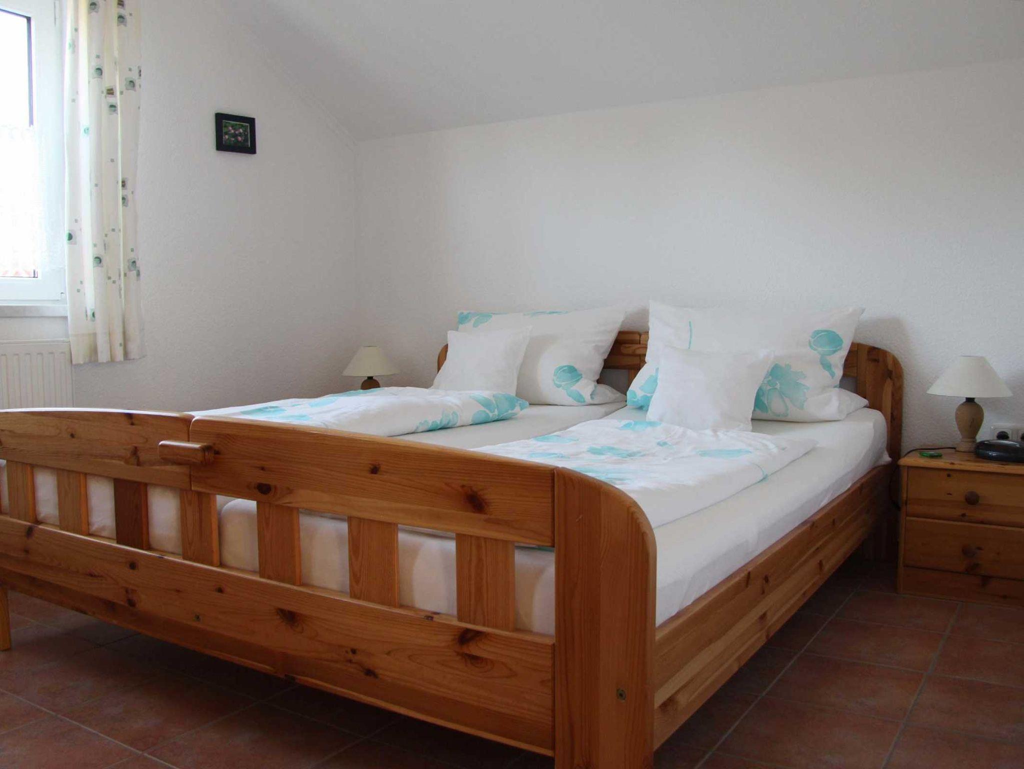 Schöne Nichtraucher-Ferienwohnung im Obergeschoss mit separatem Eingang, geeignet für bis zu 4 Personen inkl. Kleinkind. Gemütliches Wohnzimmer mit SAT-TV, DVD und Stereoanlage. Komplett eingerichtete Einbauküche mit Spülmaschine und Essecke. Zugang zum großen Südbalkon. Waschmaschine ist vorhanden. 1 Schlafzimmer mit Doppelbett. 1 Schlafzimmer mit variabler Bettcouch und Kinderreisebett/Hochstuhl. Bad mit Dusche/WC. Die Wohnung ist komplett gefliest und mit Fußbodenheizung ausgestattet. Fährräder, Kindersitz und Bollerwagen stehen Ihnen zur kostenlosen Nutzung zur Verfügung. Haustiere sind leider nicht erlaubt.