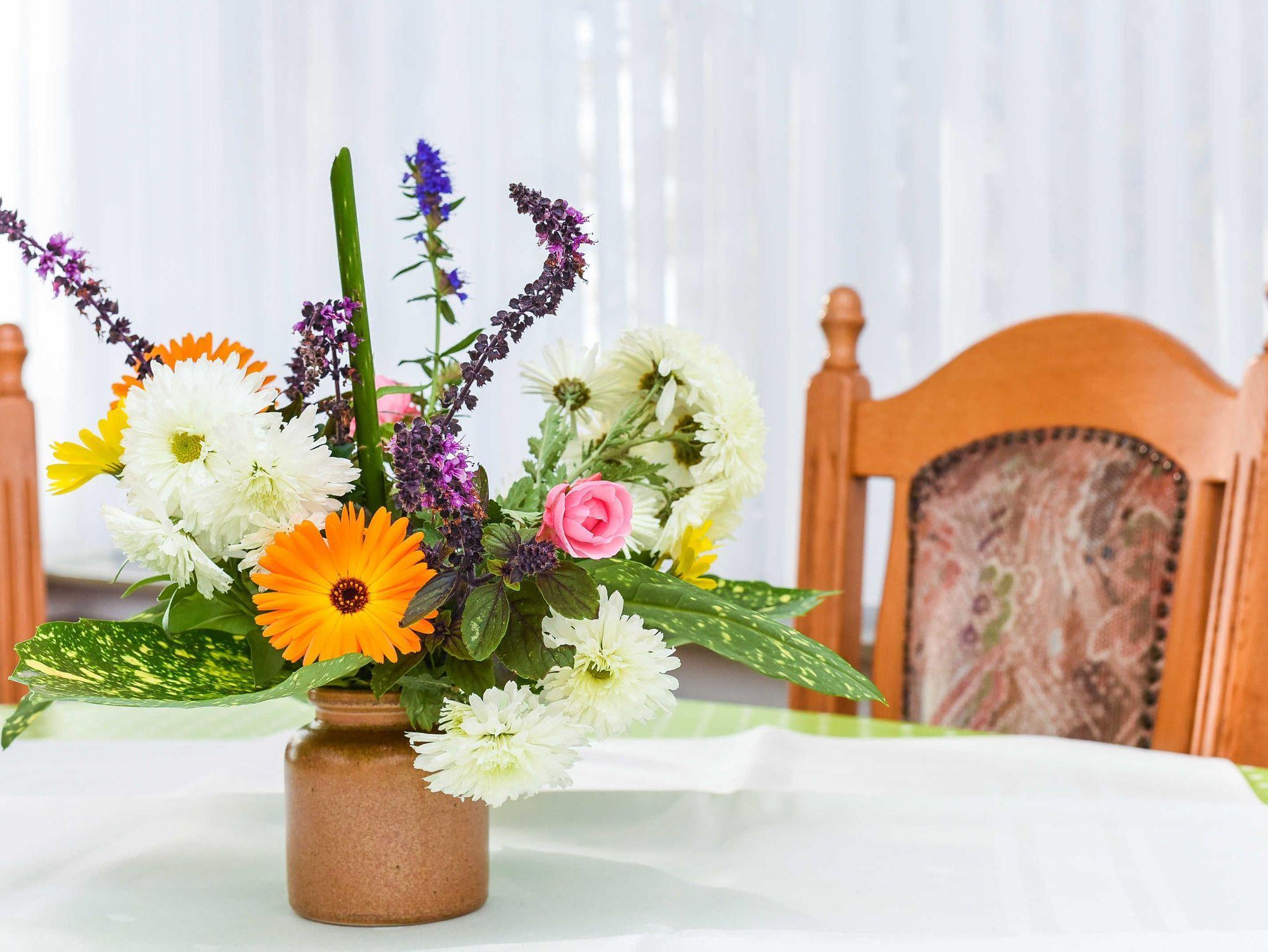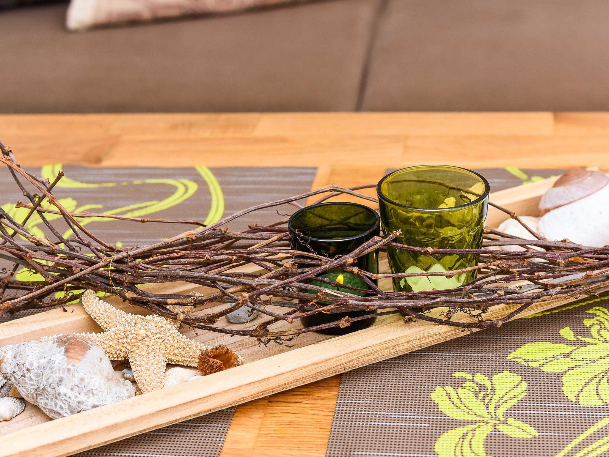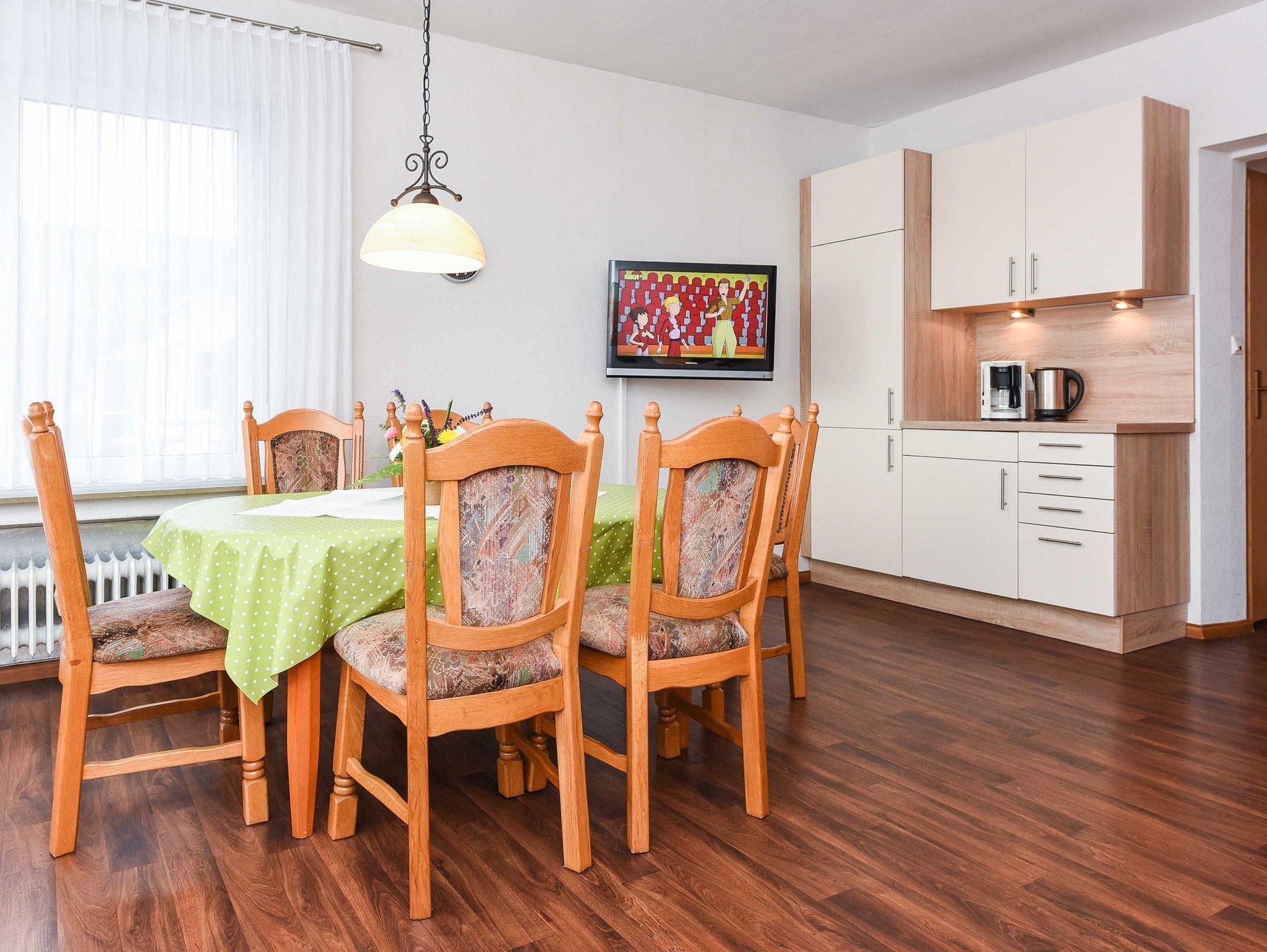 Größe ca. 70 Quadratmeter, Wohnzimmer mit Essgruppe, Küche im offenen Flurbereich integriert, Schlafzimmer, zweites separates Schlafzimmer/Kinderzimmer, Badezimmer mit Dusche, Waschtisch und WC, Erdgeschoss für 2 bis 5 Personen und zusätzlich ein Kleinkind.