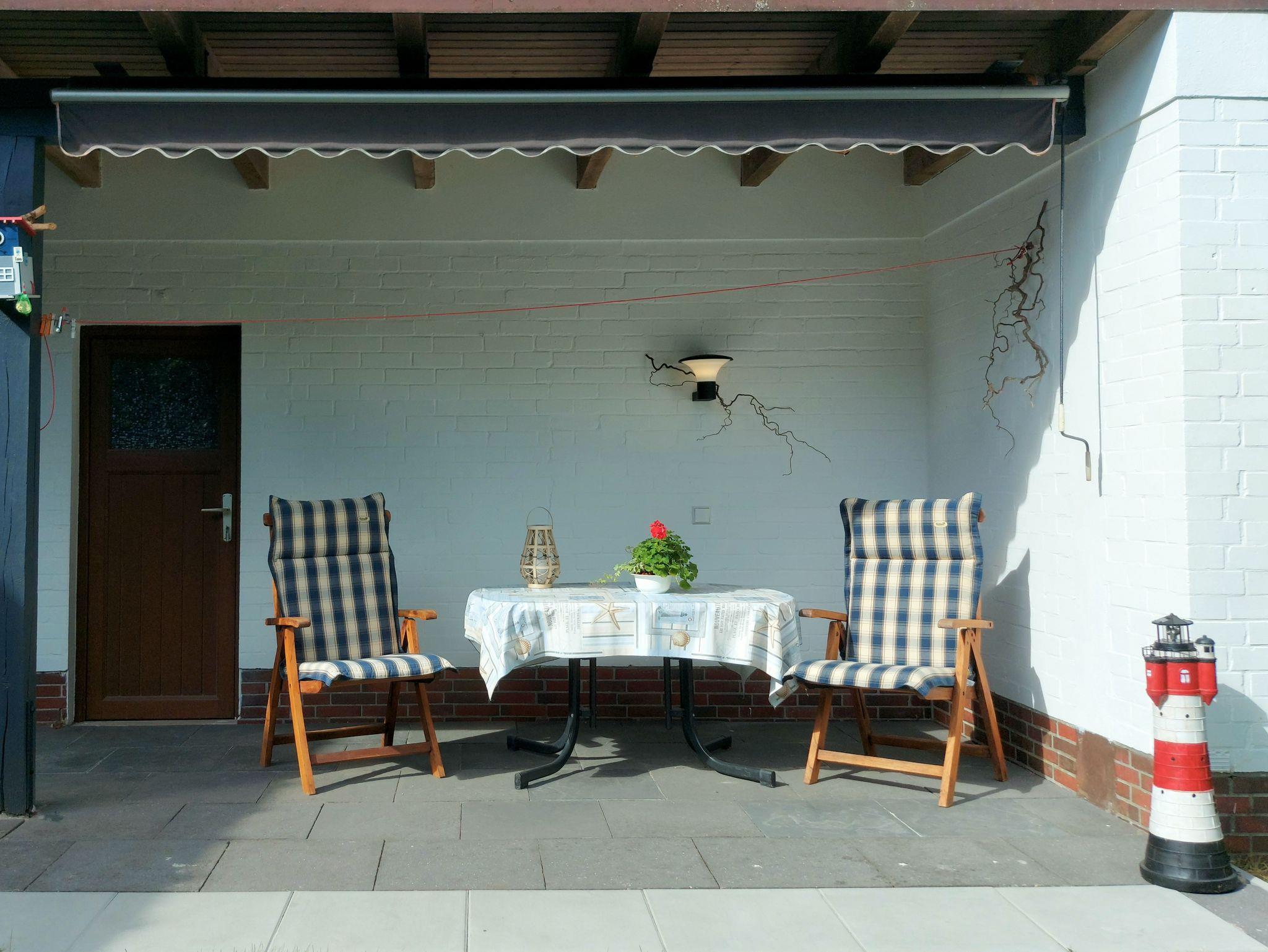 Die möblierte Sonnenterrasse und der schöne Garten sind ideal geeignet für gemütliche Stunden an der frischen Luft. Das Haus mit der Ferienwohnung „Windrose“ steht in einer ruhigen Wohnsiedlung.