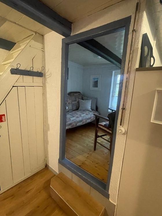 Neben der Küche ist über der Upkammer (ein kleiner Keller von früher) eine kleine Ruheoase mit Ostfriesensofa eingerichtet. Hier kann man auf den nahe gelegenen Fluss Harle schauen und einen Tee oder einfach nur die Ruhe genießen.