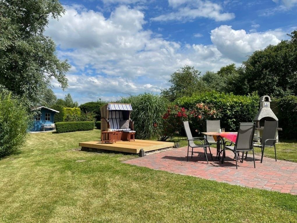 Der Garten ist recht großzügig und bietet auf ca. 1200qm viel Platz. Ein Gartenhäuschen bietet Platz für Ihre Fahrräder oder auch einfach nur um etwas Windgeschützter zu sitzen. Direkt daneben steht ein Gartengrill aus Stein. Zur Verfügung stehen natürlich Gartenmöbel und ein Strandkorb.