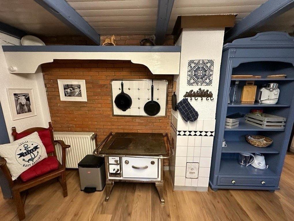 Das ca. 105qm2 große Ferienhaus aus dem Jahr 1876 ist ein besonders Stück alter Tradition und Wohnkultur aus dem küstennahen Ostfriesland. Im Vorderhaus sind die Räume noch wie früher, mit alter sichtbarer Balkenlage, den schiefen alten Türrahmen, einem Stangenofen und teilweise alten Fliesen.