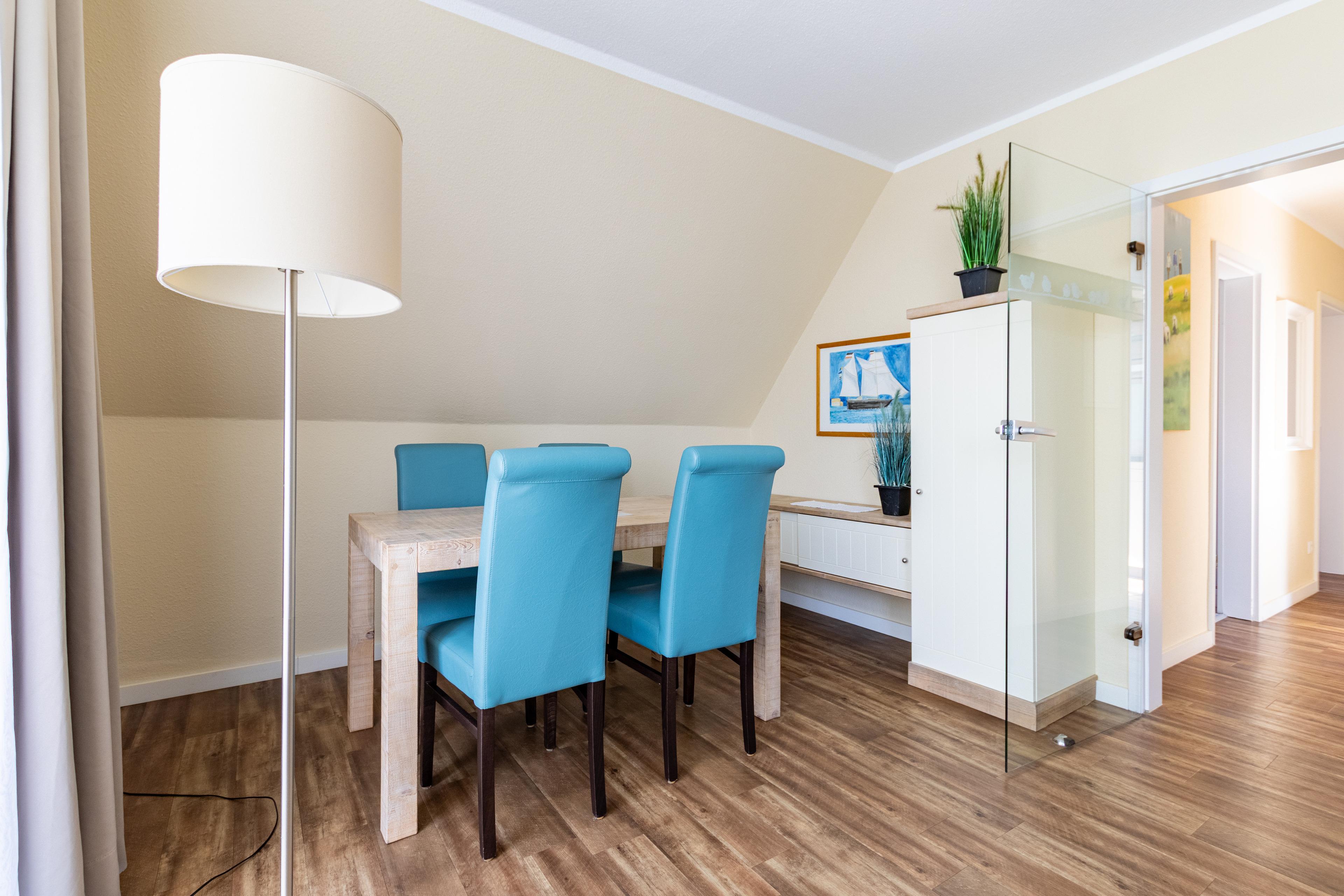 Genießen Sie entspannte Urlaubstage in einer stilvoll eingerichteten Ferienwohnung im Obergeschoss; ein komfortabler Rückzugsort für erholsame Tage an der Nordsee im charmanten Nordseeheilbad Carolinensiel-Harlesiel.