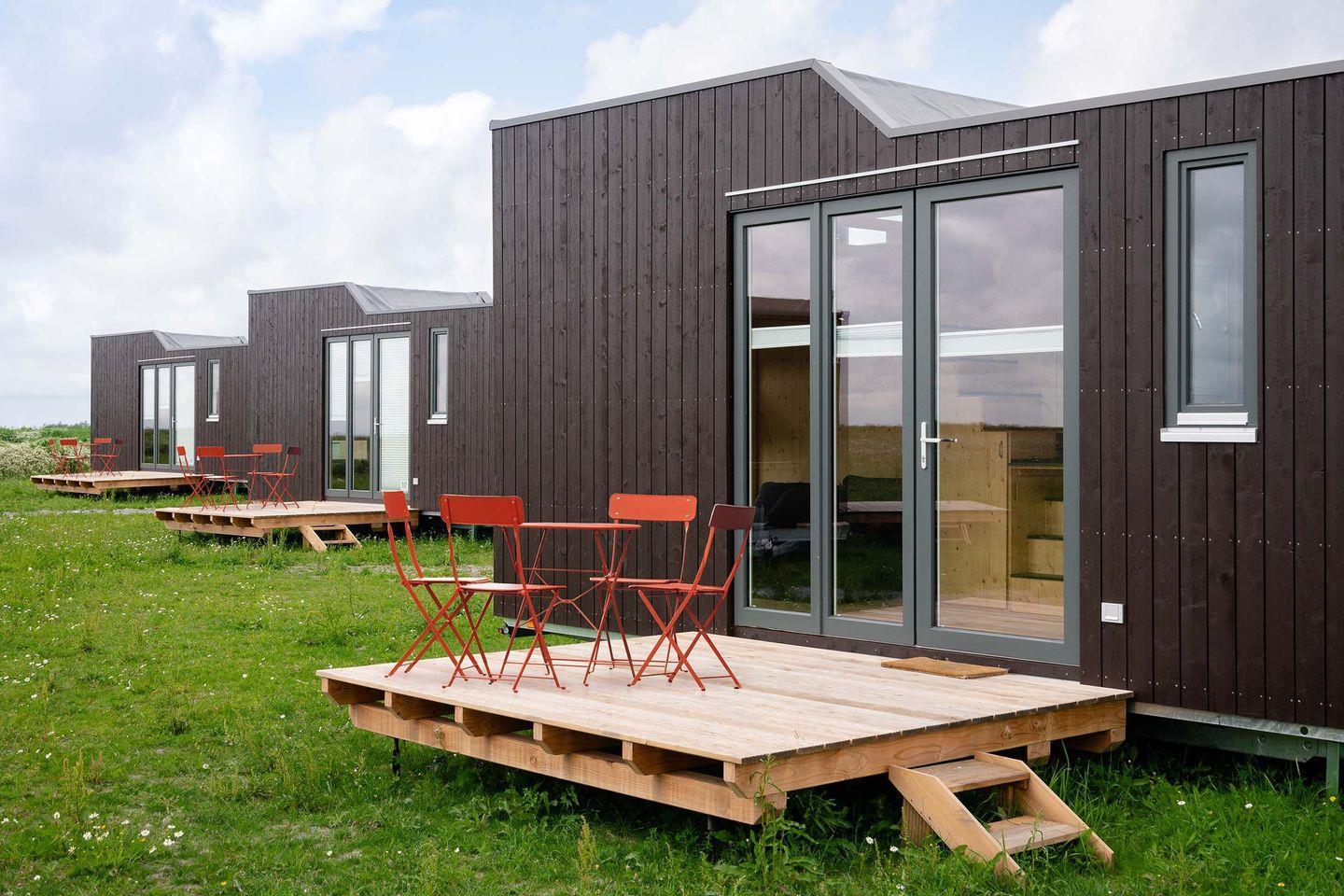 Nachhaltiges Green Tiny House Nature an der Nordsee bietet Natururlaub mit modernem Komfort und großer Terrasse.