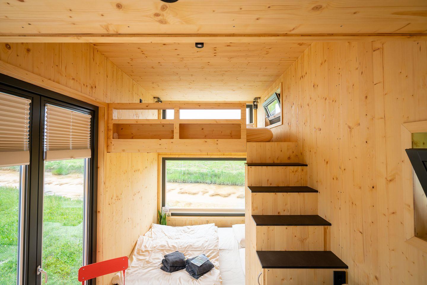 Erlebe mit dem Green Tiny House Nature den Urlaub der Zukunft. Unser Tiny House-Modell Nature wird regional in Niedersachsen produziert. Es ist perfekt geeignet für Familien mit bis zu vier Personen. Freue dich auf ein loftiges Interieur auf zwei Ebenen, eine große Terrasse und ein modernes Badezimmer mit Astronautendusche. Dank dem grünen Design und minimalem Umwelteinfluss ist das Mini-Ferienhaus außerdem als nachhaltige Ferienimmobilie zertifiziert. Die ökologische und wohngesunde Bauweise schont wertvolle Ressourcen und fördert das Wohlergehen der Gäste. Zusätzlich kompensieren wir alle anfallenden CO2-Emissionen und ermöglichen dir so eine klimaneutrale Übernachtung.