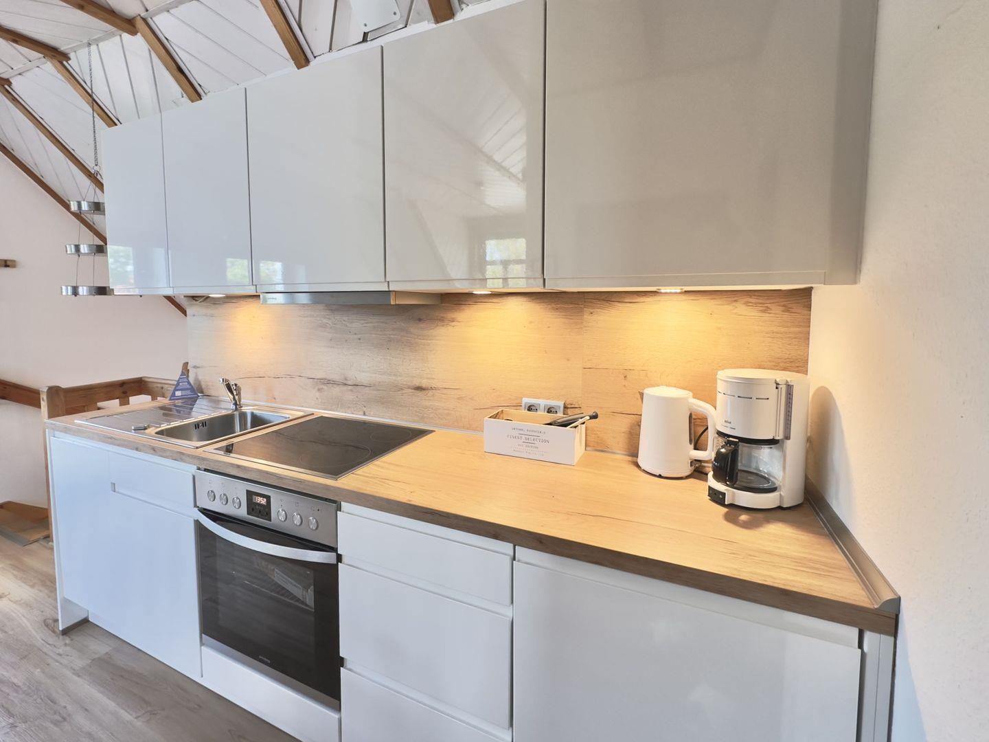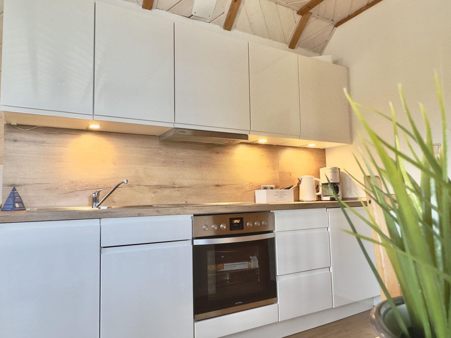 Die offene Wohnküche ist funktional ausgestattet – ideal für alle, die auch im Urlaub gerne selbst den Kochlöffel schwingen.