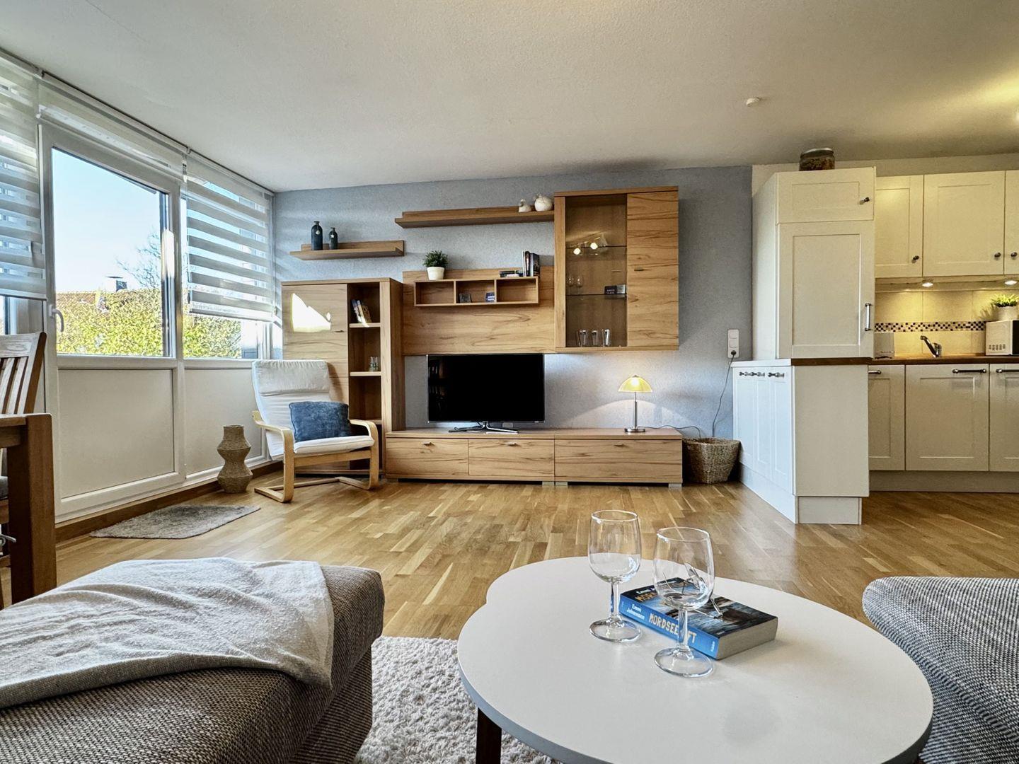 Gemütliche 45qm Ferienwohnung mit Balkon im Herzen von Carolinensiel, ideal für eine erholsame Auszeit an der Nordsee.
